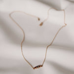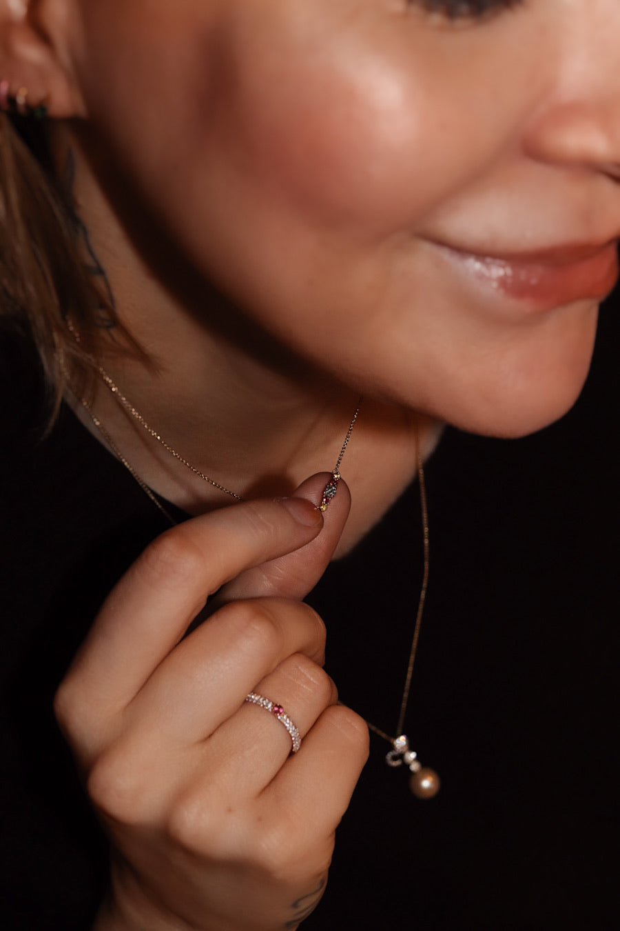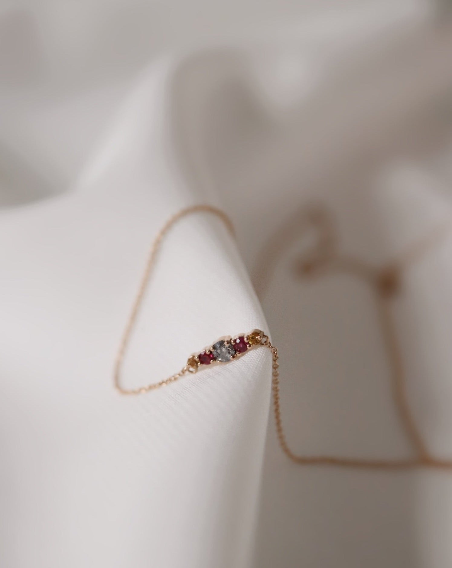 A custom necklace with a seemingly bold choice of gemstones. In fact, they all represent part of her family: