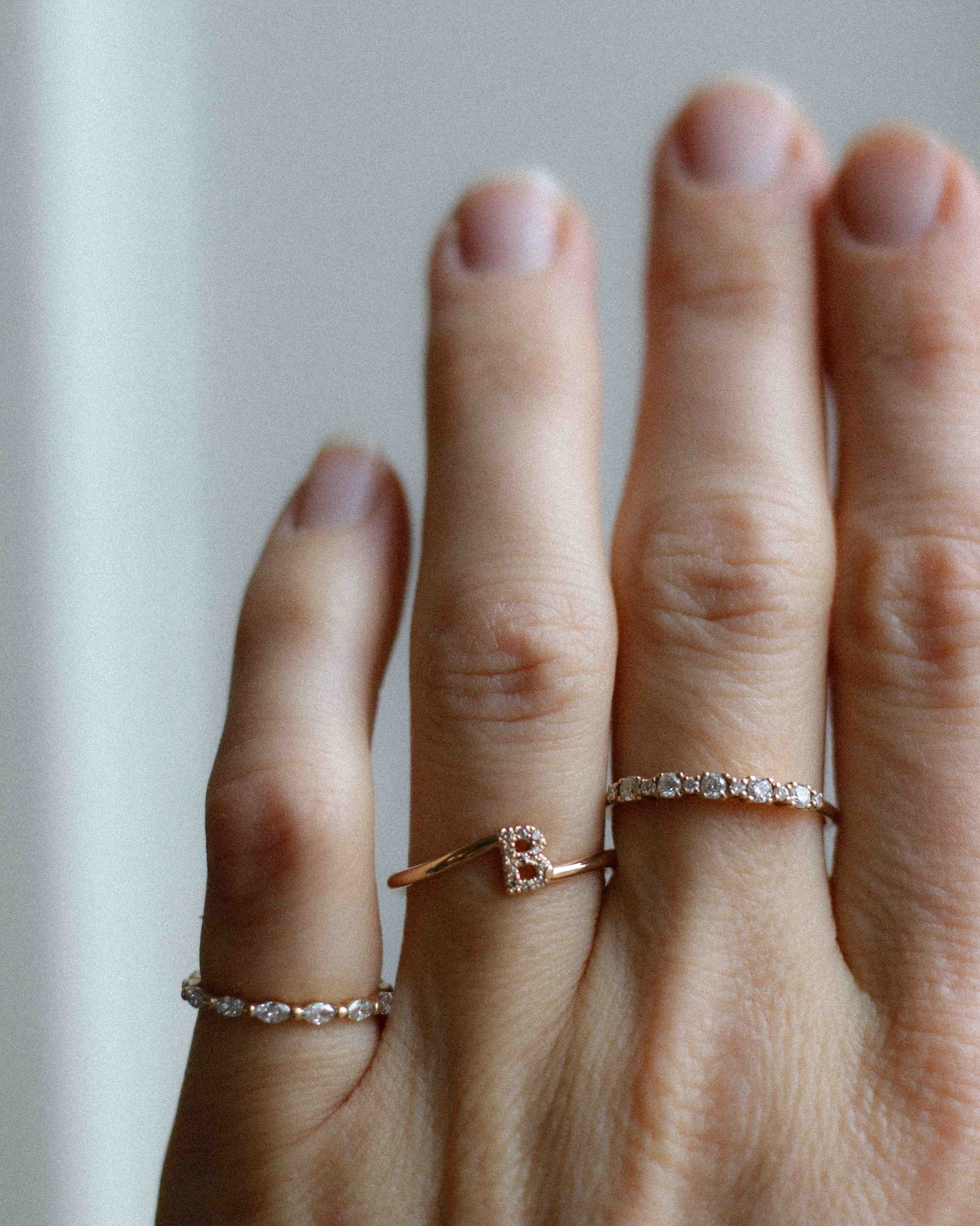 Skräddarsydd Bokstavsring med ditt val av ädelstenar (och gravyr inuti ringen)