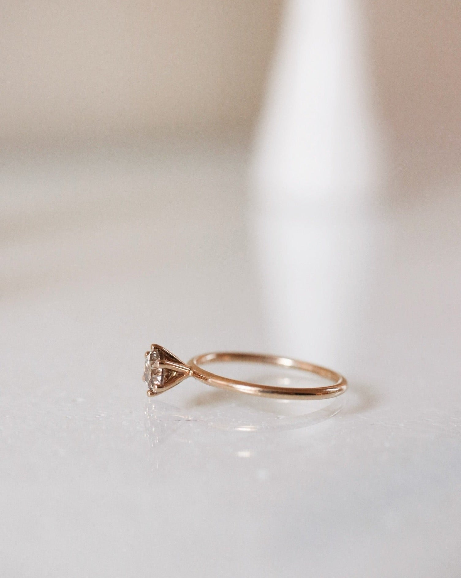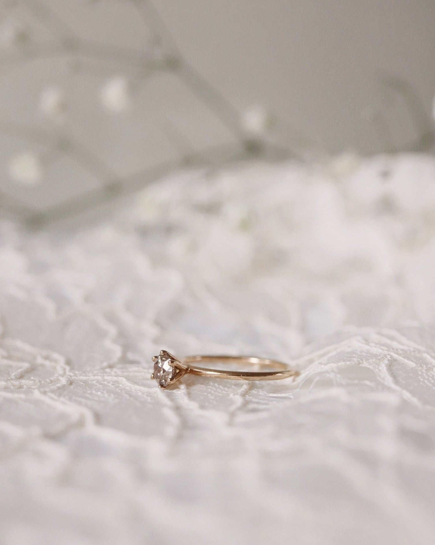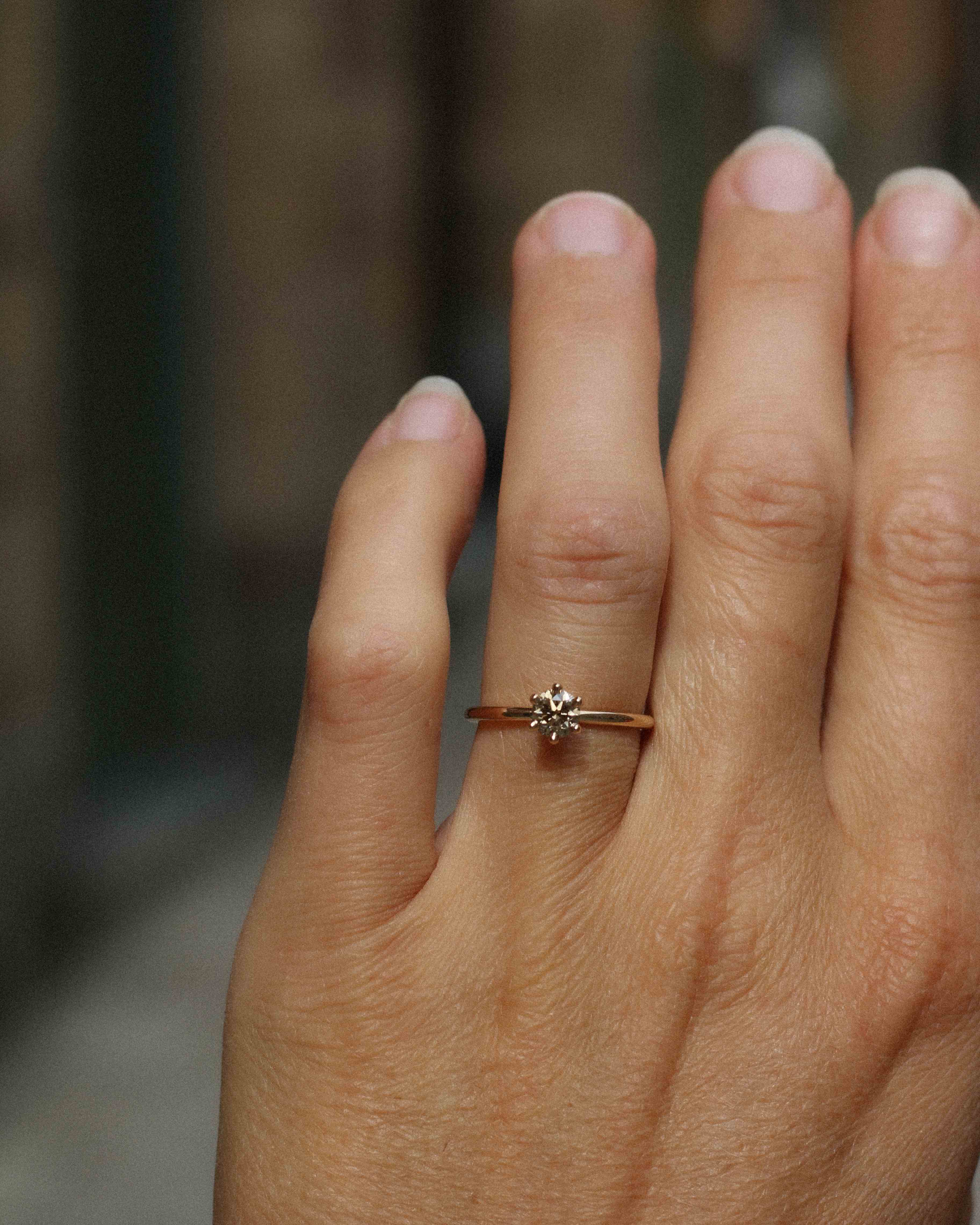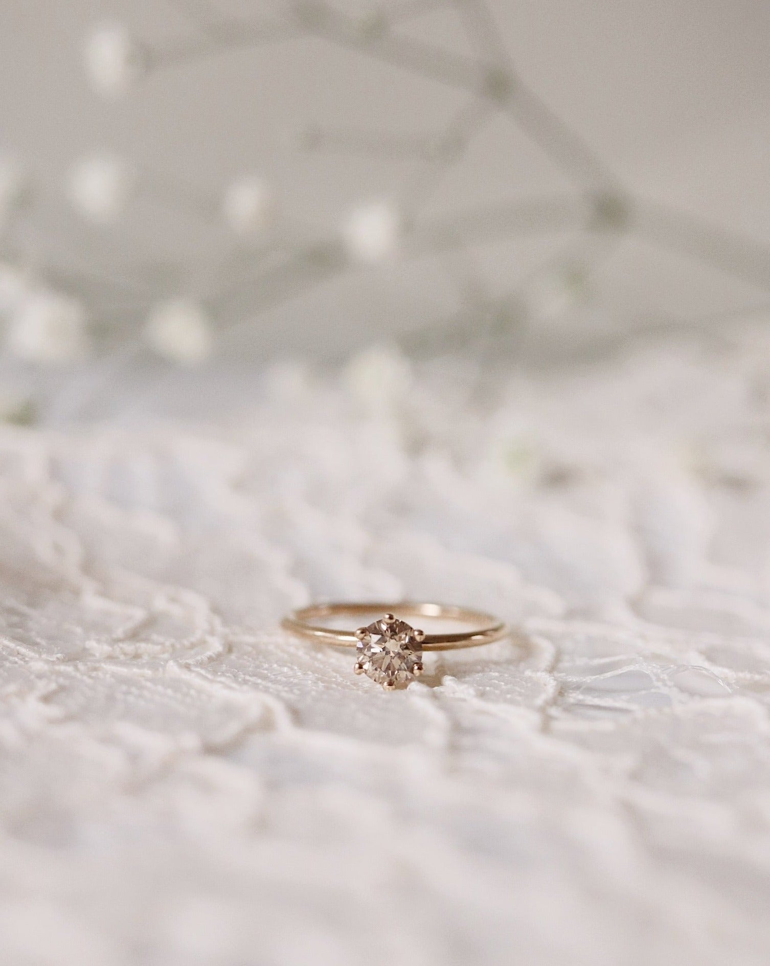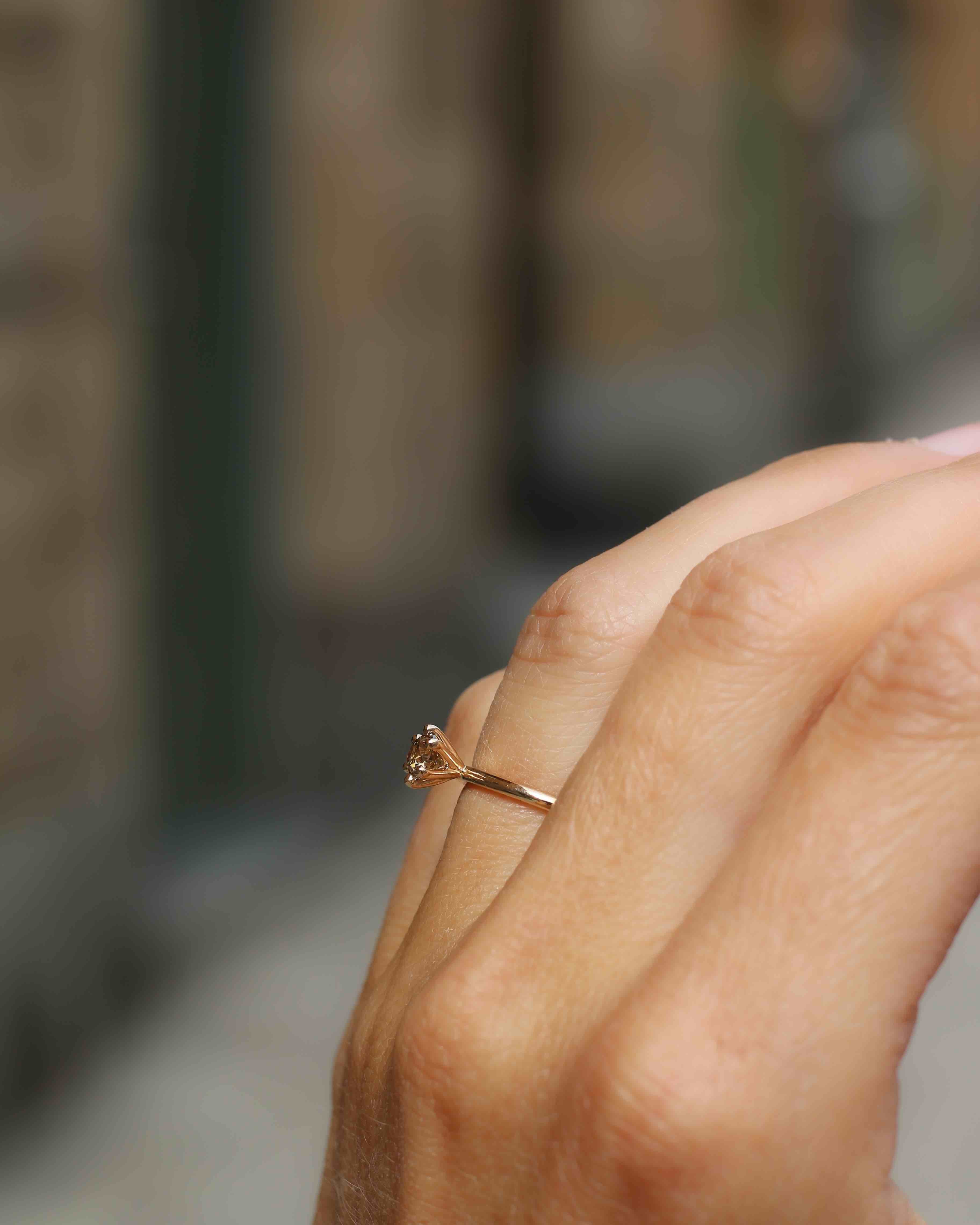 The diamond is a natural, light brown diamond in our signature champagne tone.