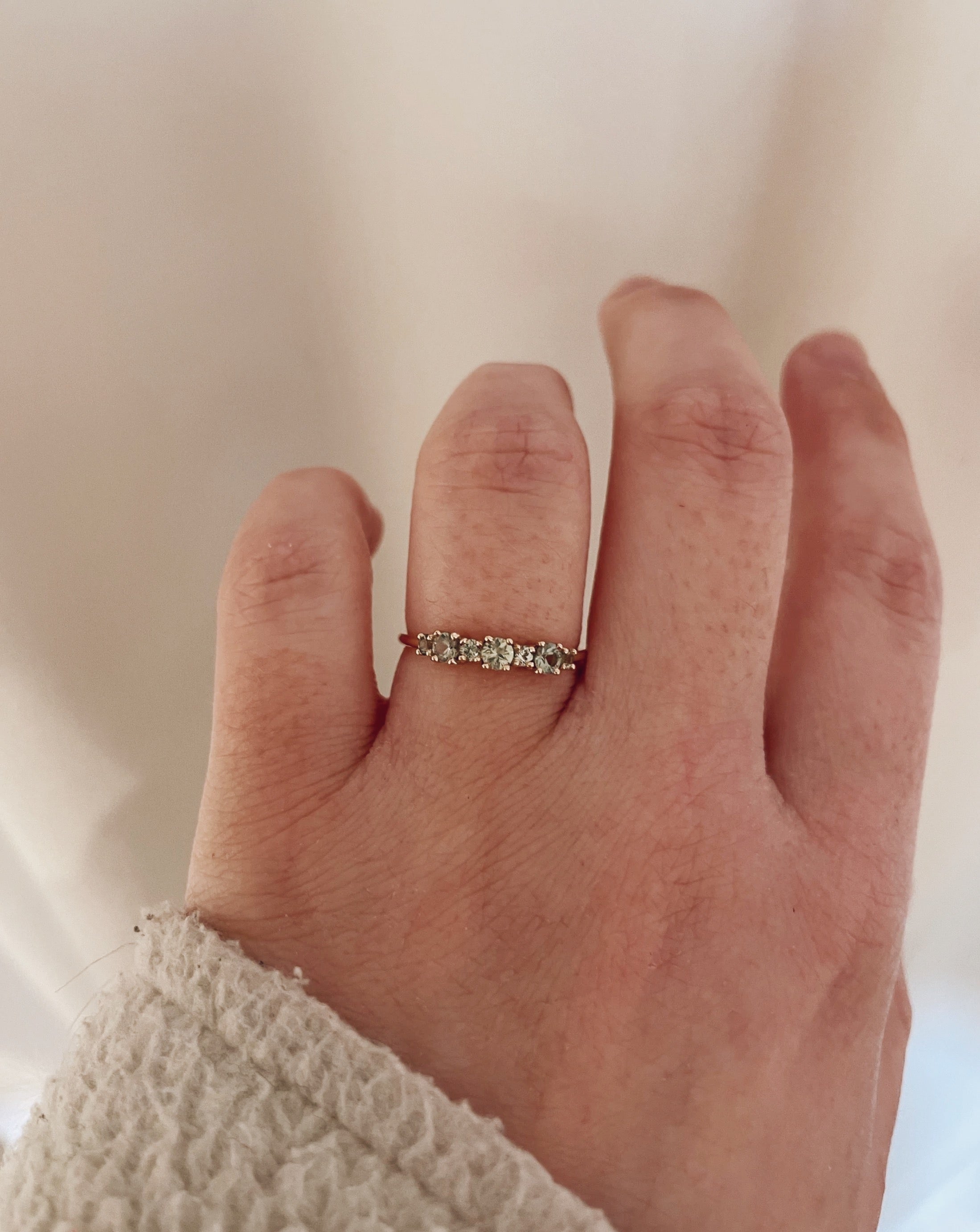 Brigitte Ring has become one of our most loved rings. It looks just as beautiful when worn alone as in a stack of many rings. In this way, Brigitte Ring is one of the most versatile rings that you can have in your jewelry box!