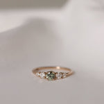 Finished: Elise Ring 0.55 CT with Olive Green Sapphire and Diamonds