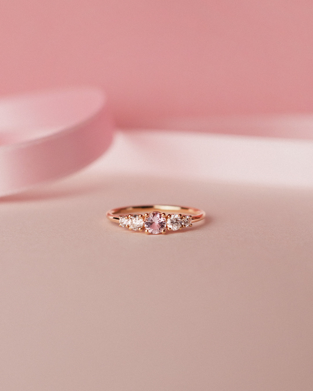 This special version features a 4 mm Morganite in a lovely, soft pink color, and a total of four Diamonds TWVS.