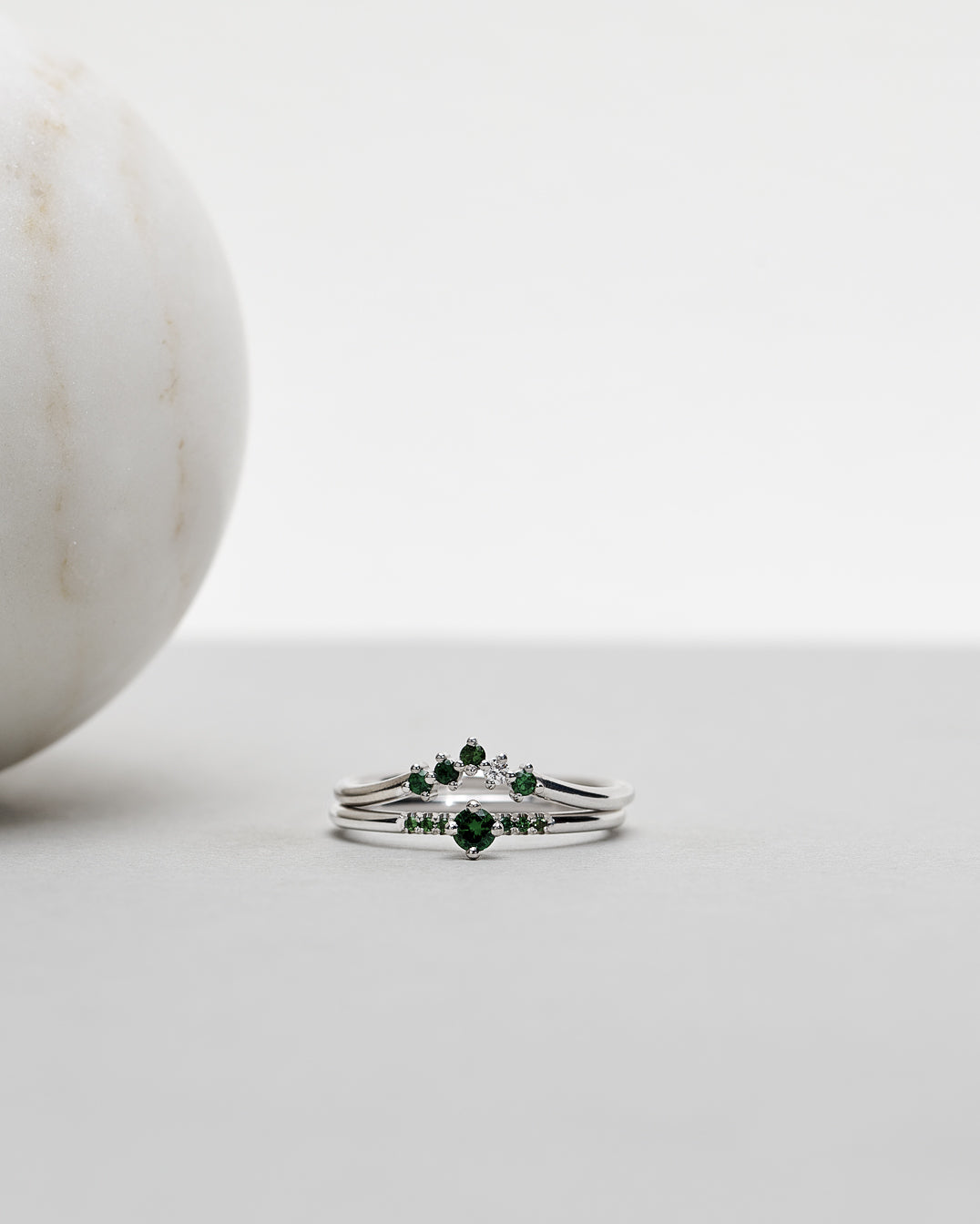 In these rings we have used natural tourmalines in a stunning dark green shade.