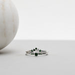 - Five Diamond Triangle Ring in White Gold with Dark Green Tourmalines and Diamonds TWVS