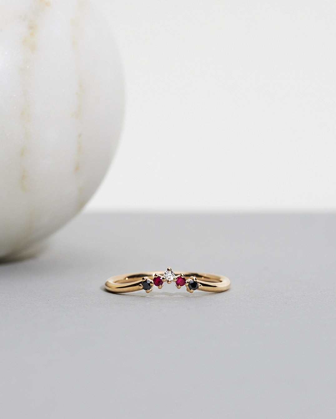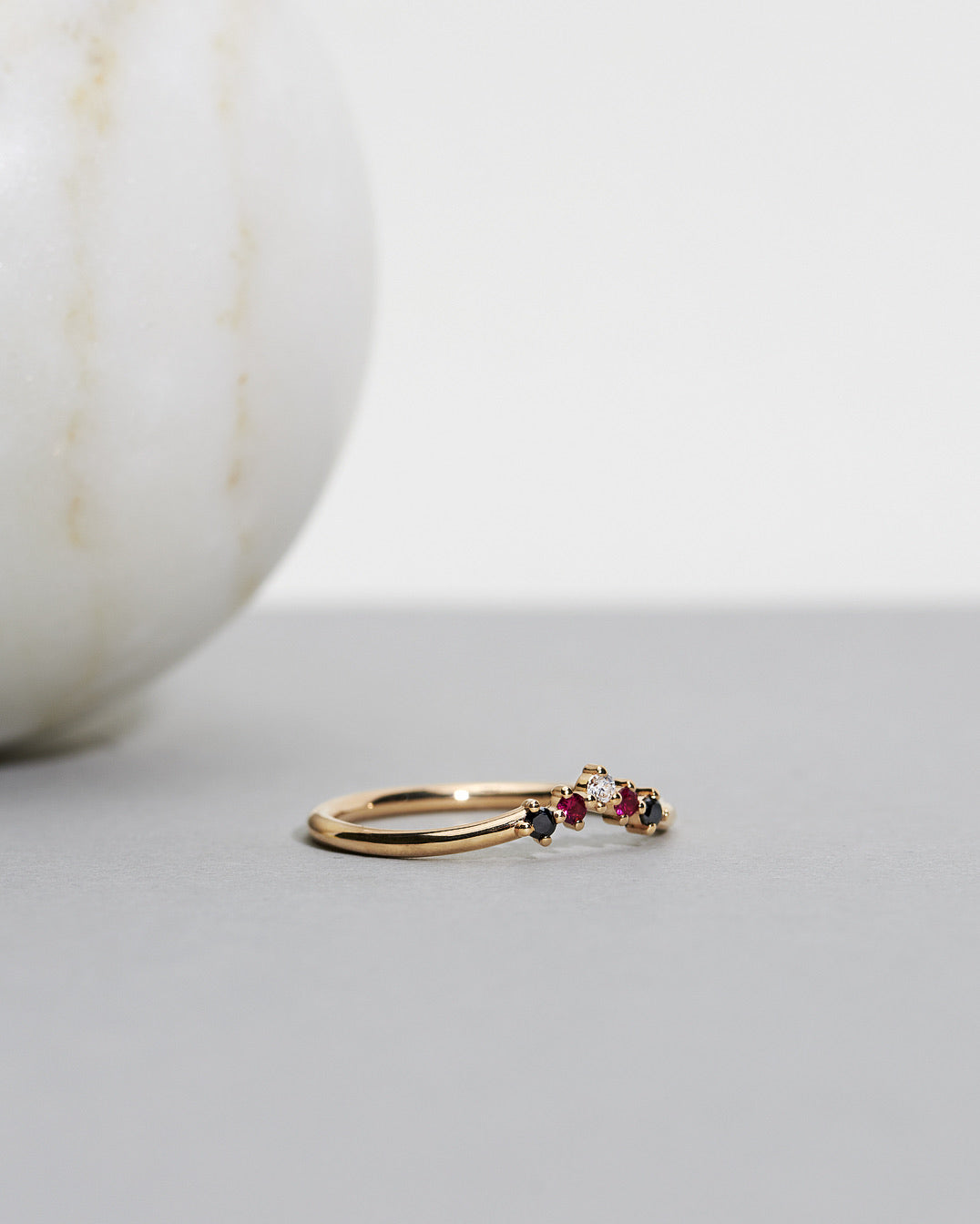 Wear it as a single ring or as part of a stack! The curved bands makes this ring beautiful to top off a stack - but also works beautifully alone on a finger.