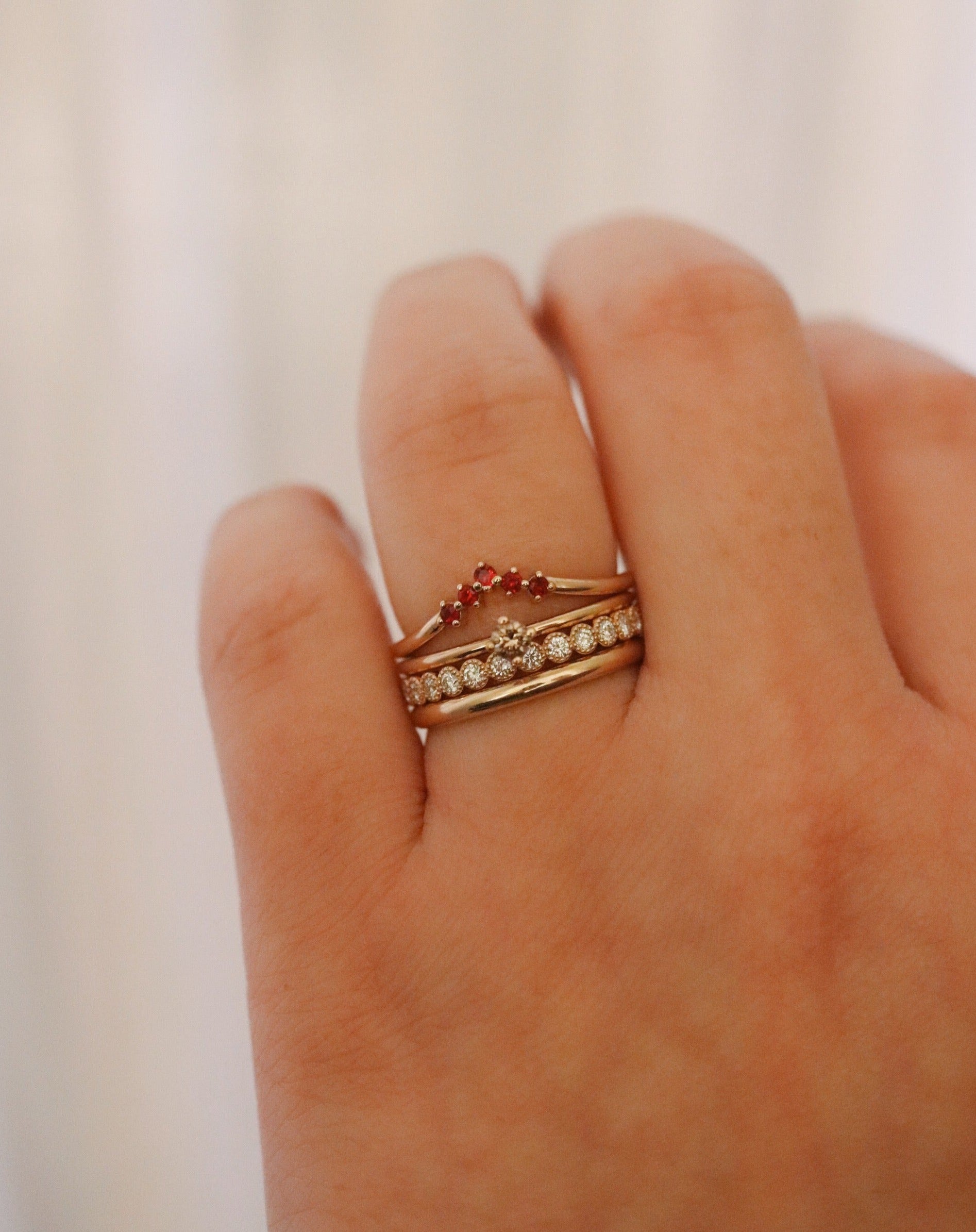 It also goes perfectly on the top or at the bottom of a stack. It stacks well with almost any other ring in our collection, including Edith Ring and Greta Ring.