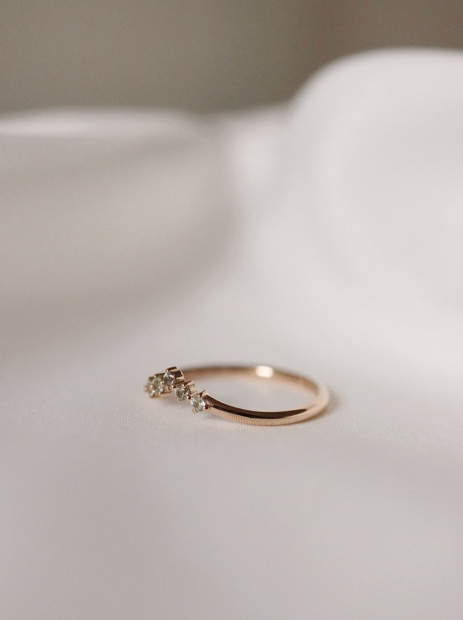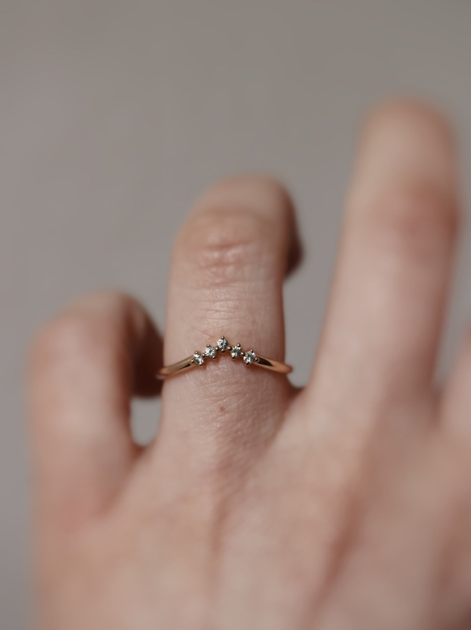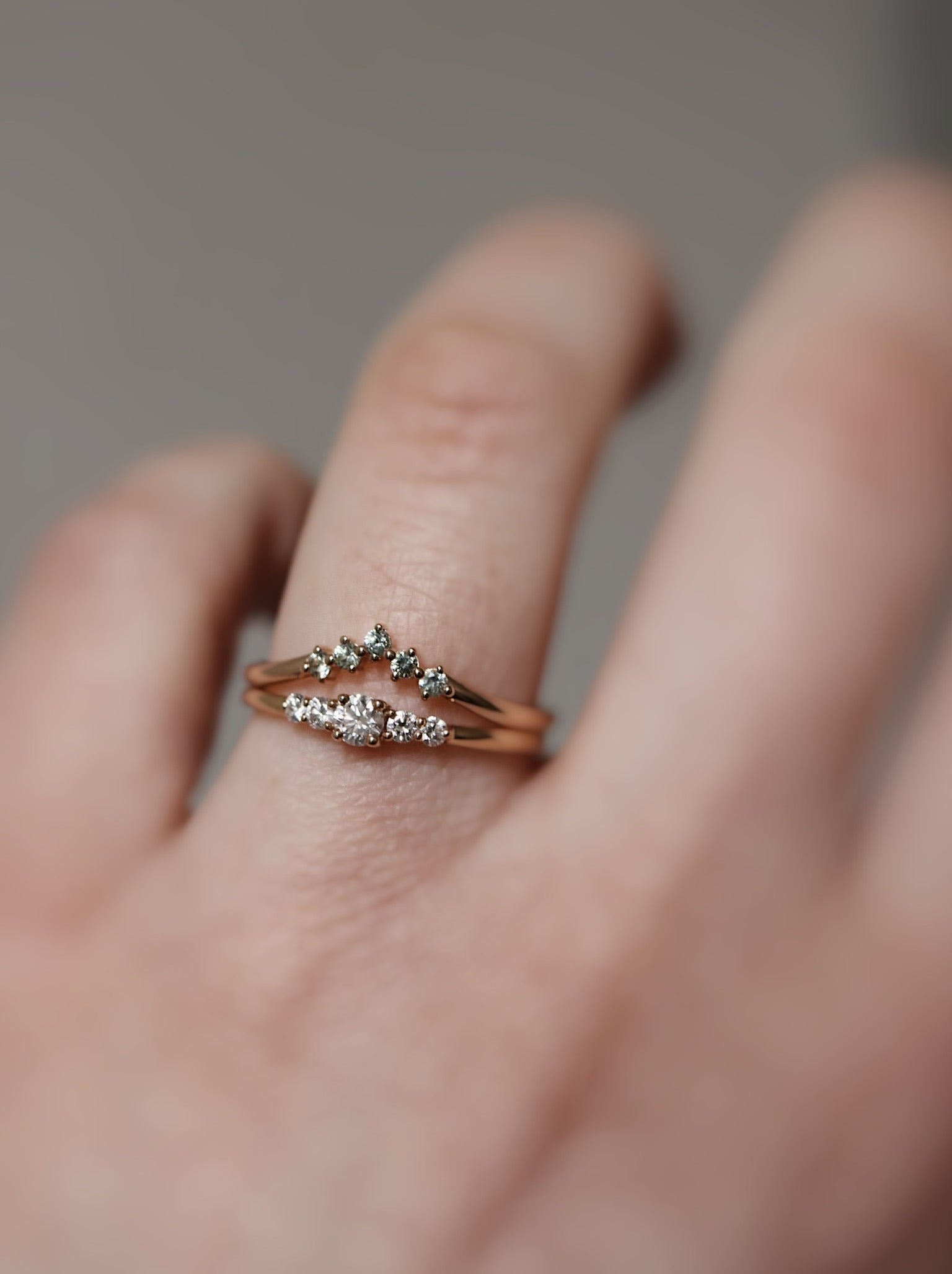 This ring is beautiful on the top or at the bottom of a stack. It stacks well with almost any other ring in our collection, including Edith Ring and Greta Ring.