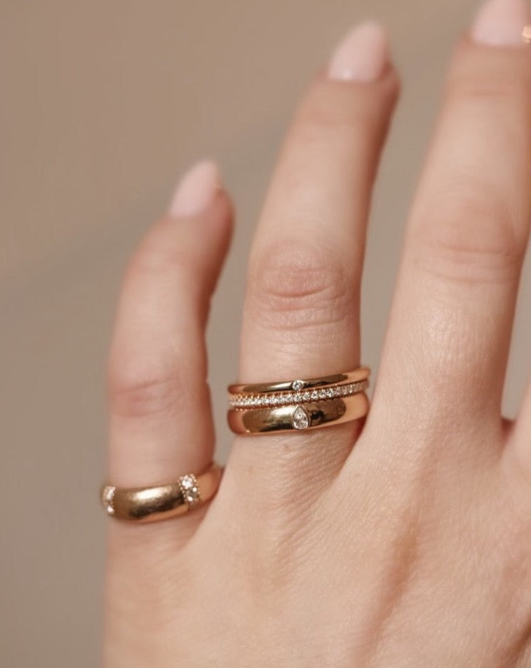 I love these new, heavier gold bands - and I feel they go SO well to our iconic thinner rings!