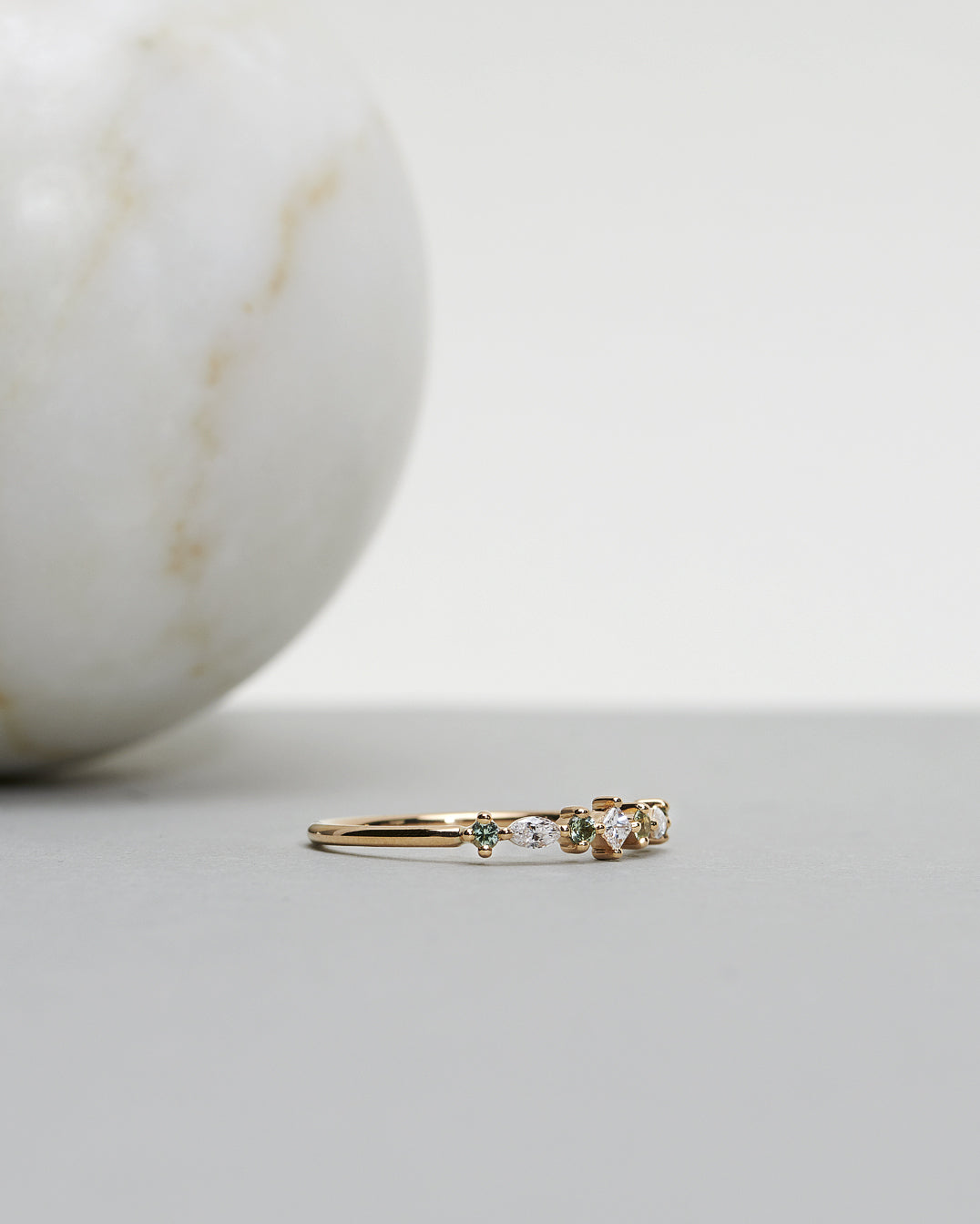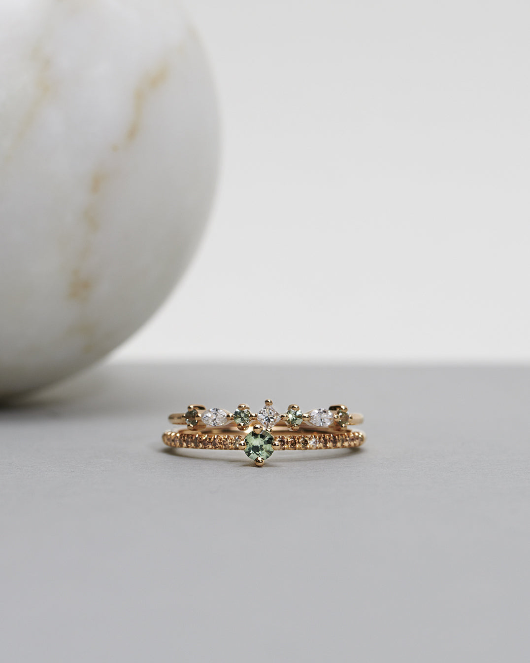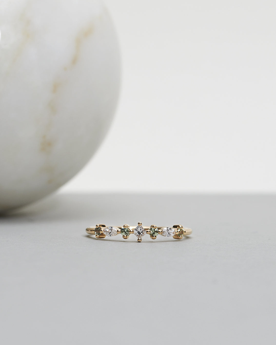 - Hilda Ring with Olive Green Sapphires and Diamonds TWVS