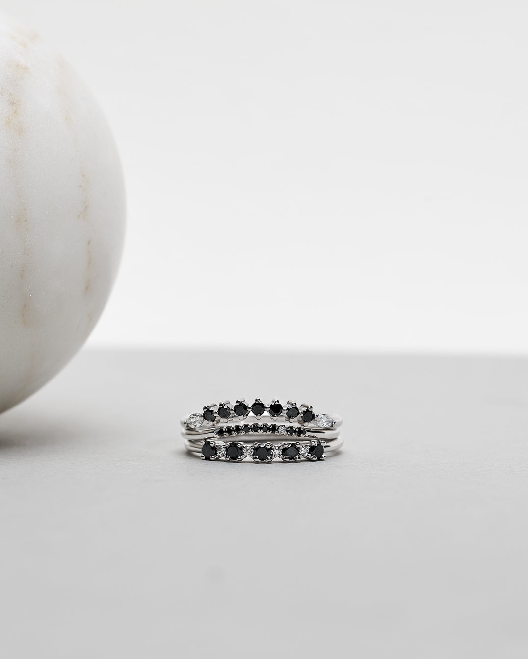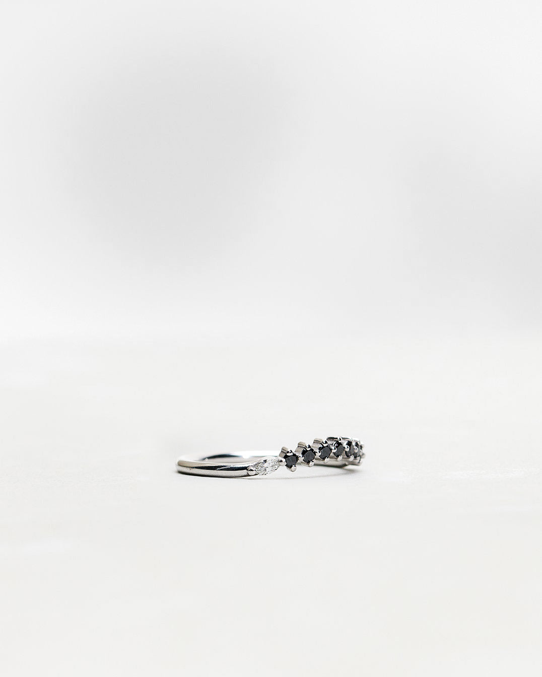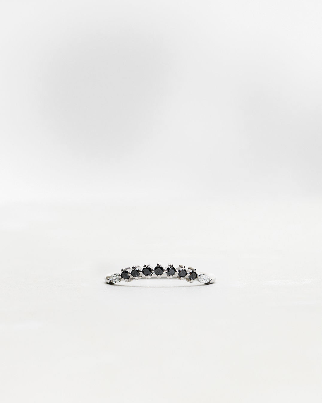 - Idun Curved Diamond Band in White Gold with Black and White Diamonds