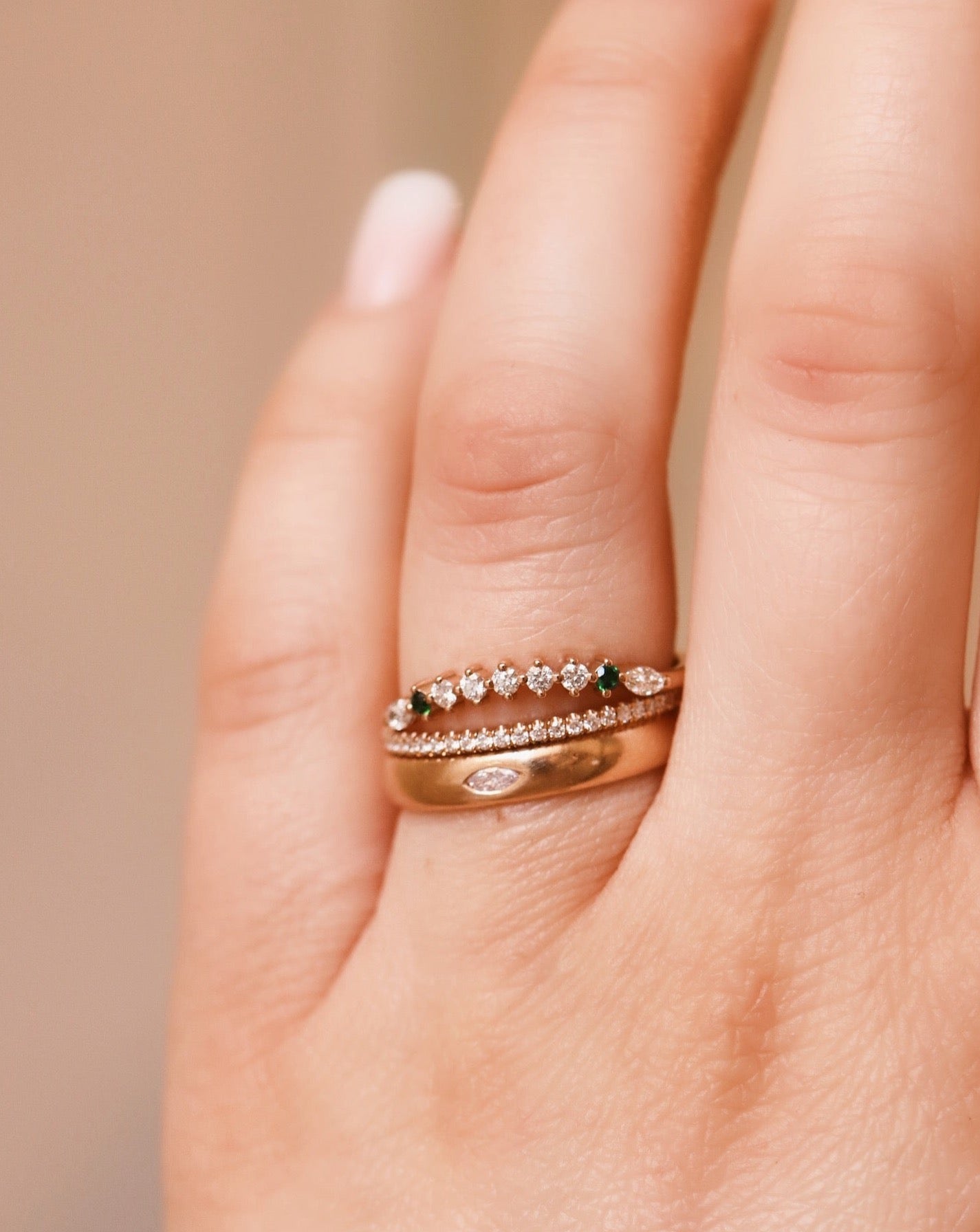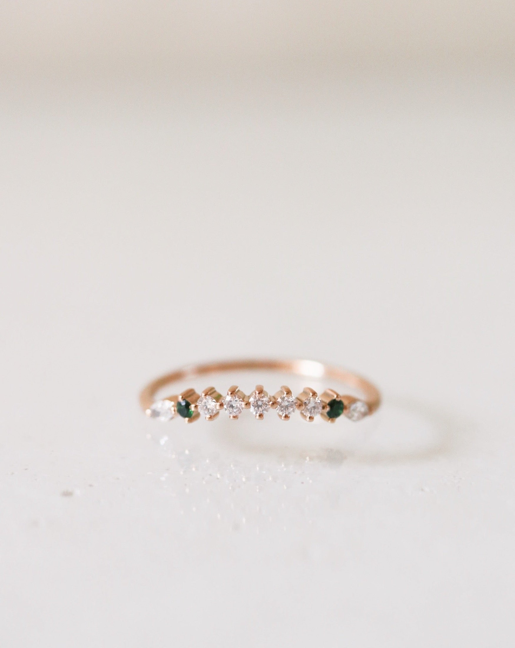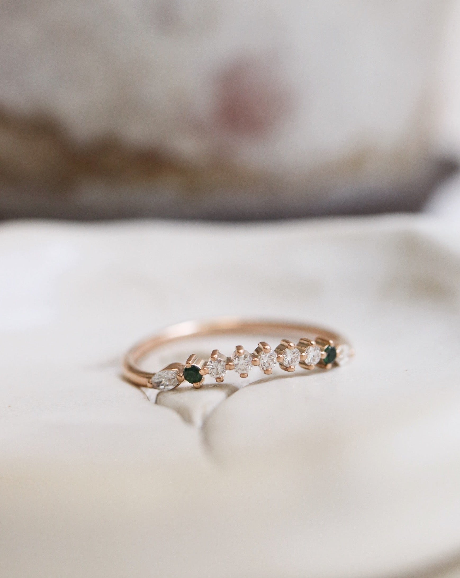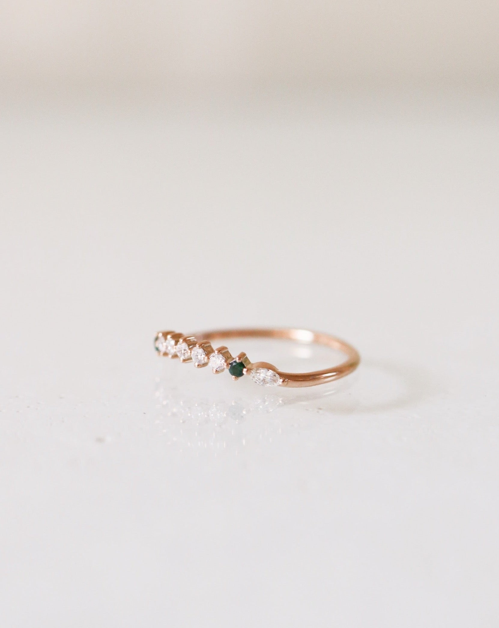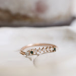 Finished: Idun Curved Diamond Band with Dark Green Tourmalines and Diamonds