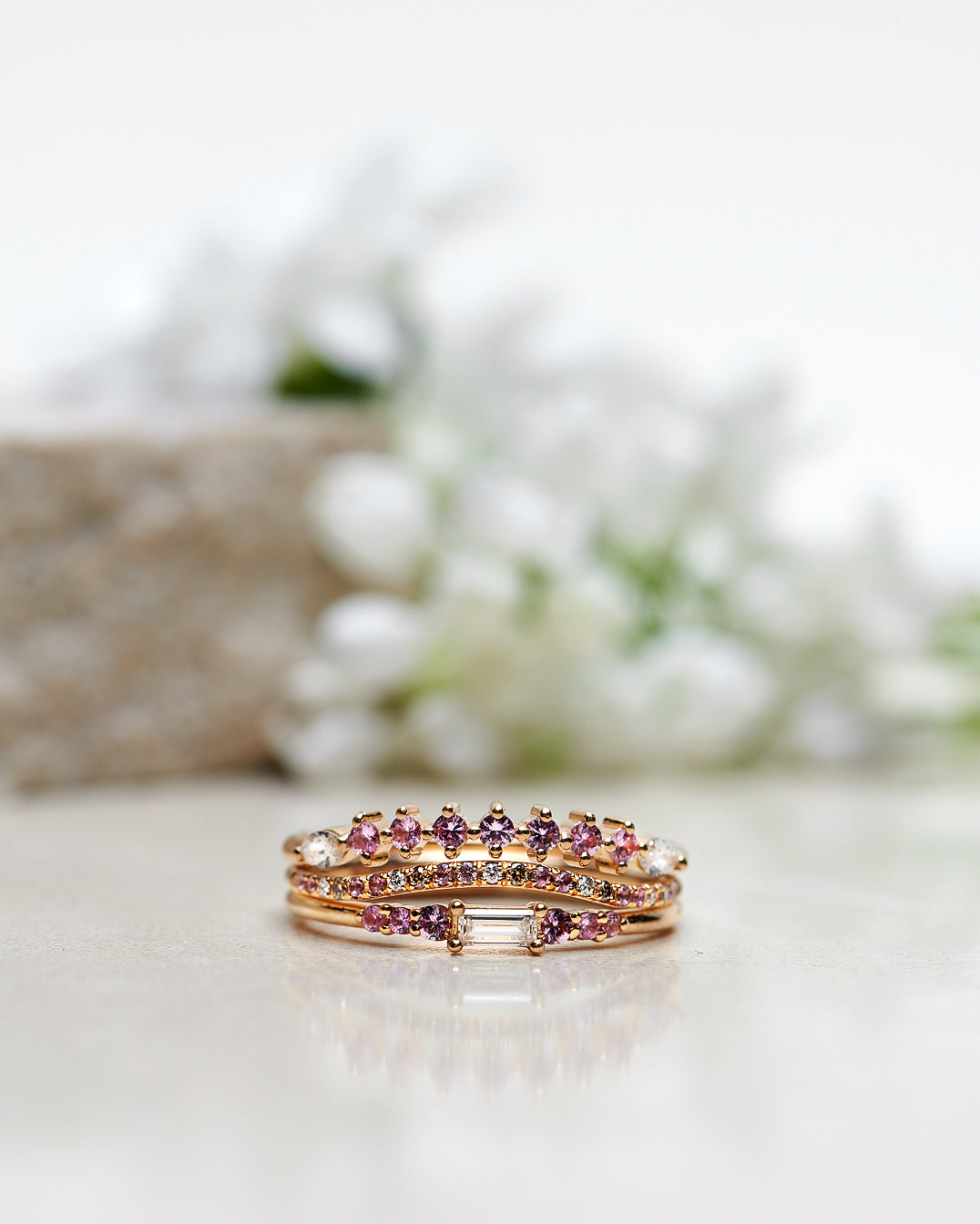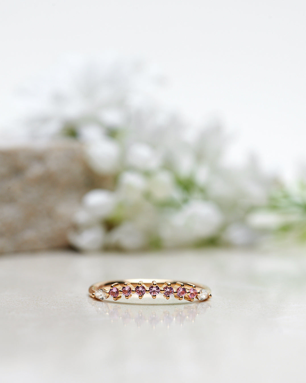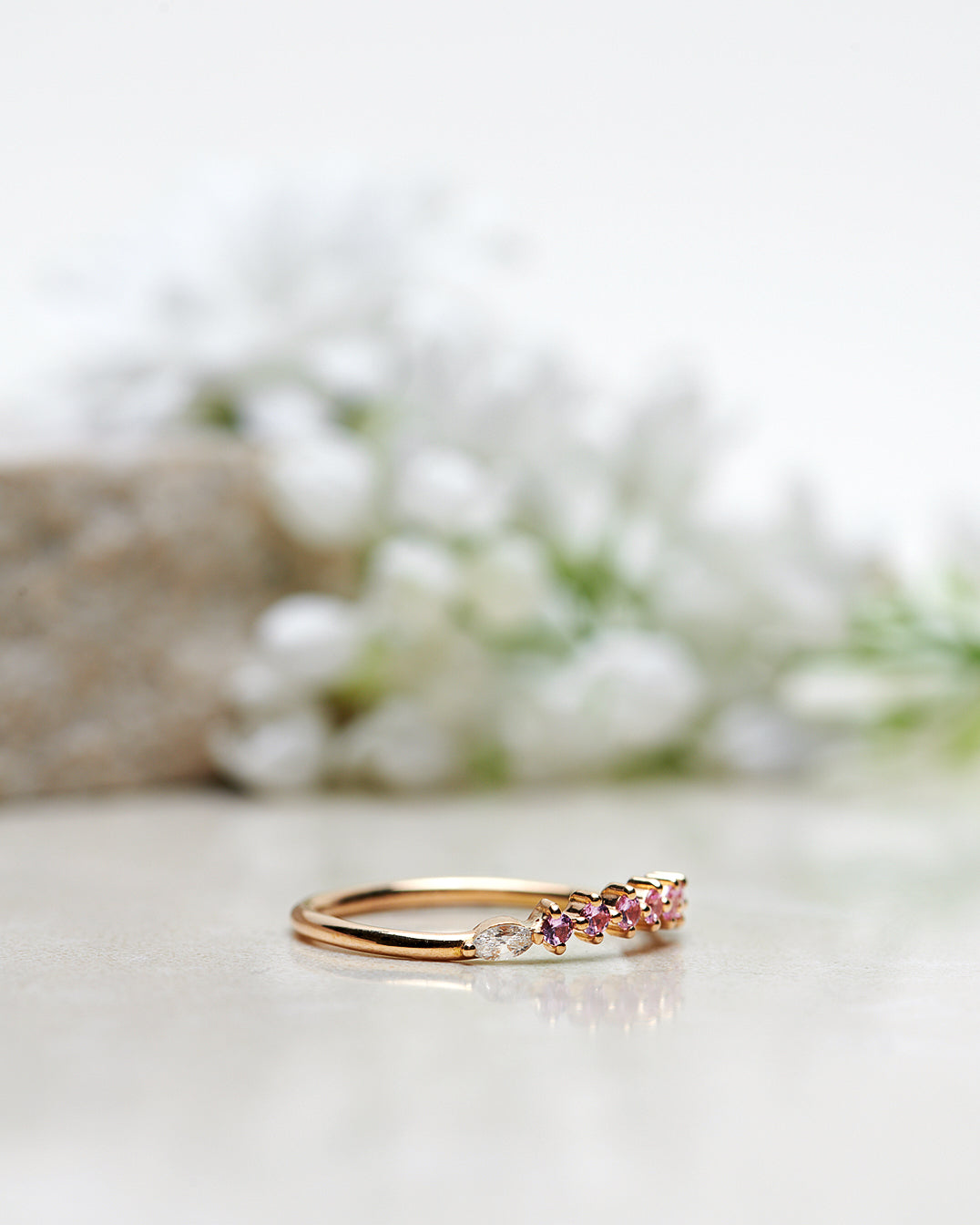 - Idun Diamond Band with Light Pink Sapphires and Marquise Cut Diamonds