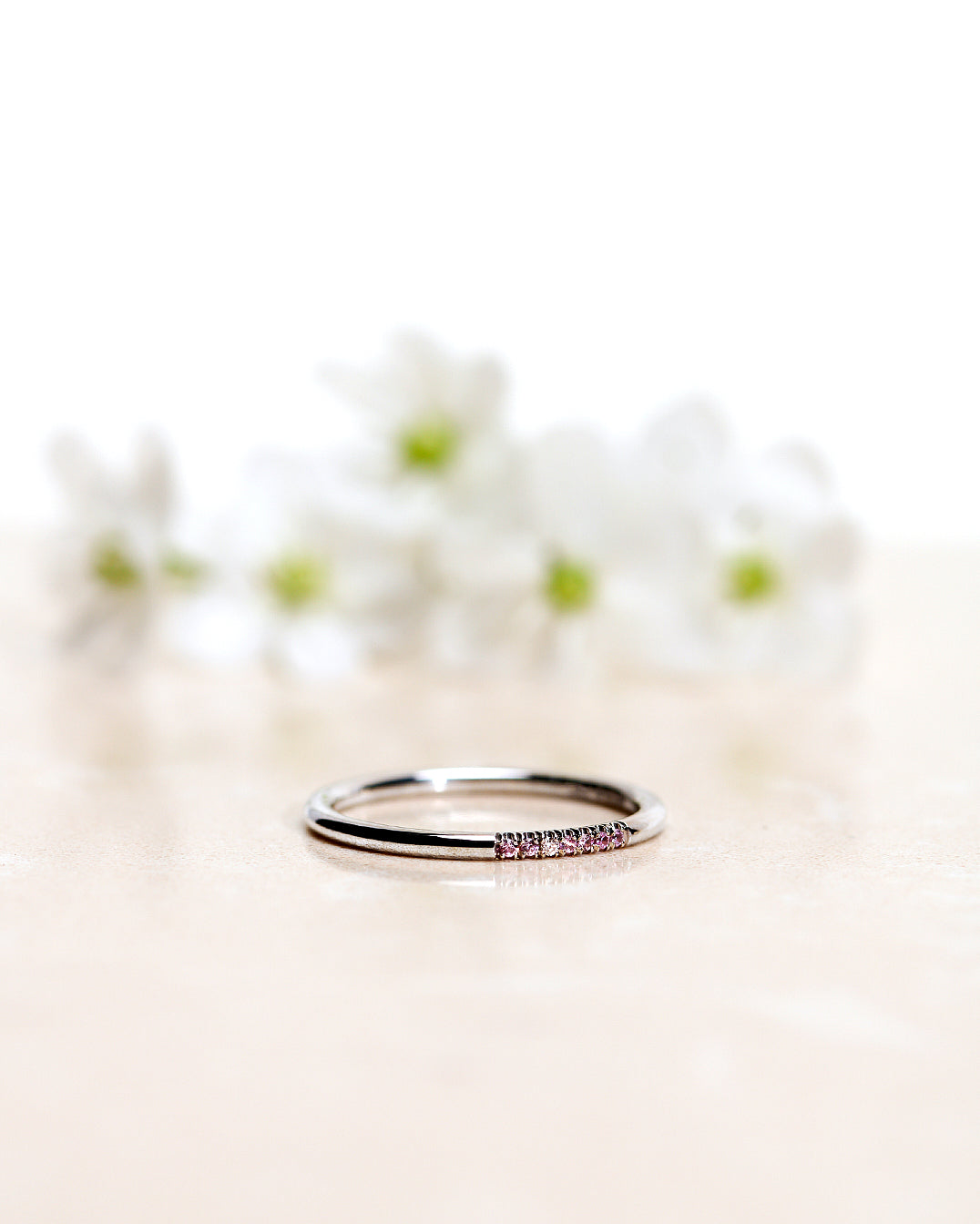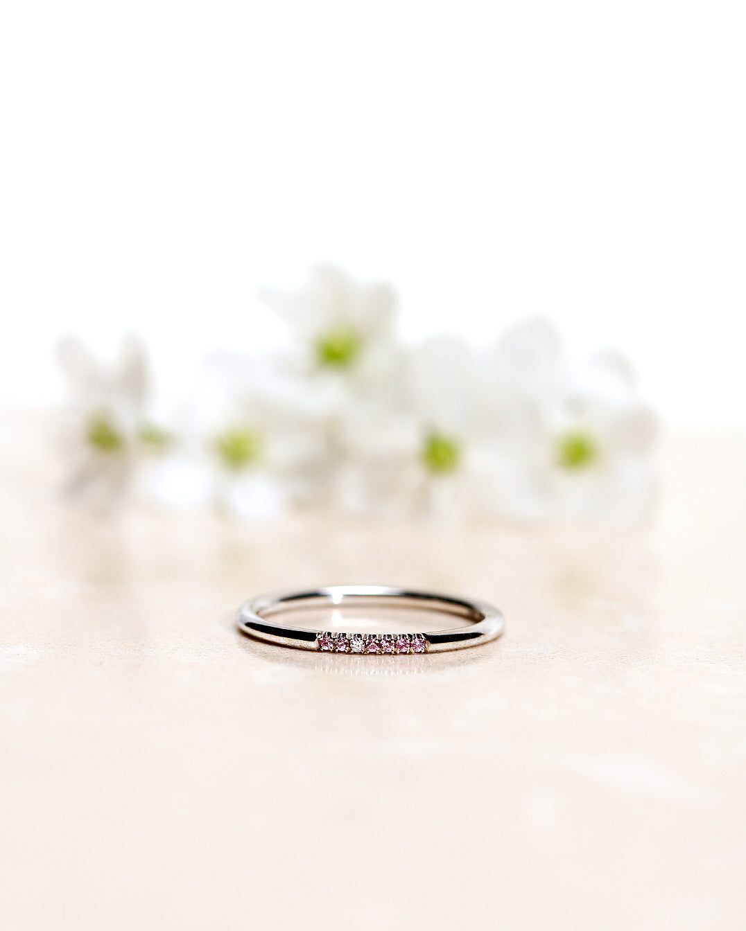 - Jade Petite Enough Ring in White Gold with Light Pink Sapphires and Diamonds