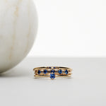 - Five Diamond Triangle Ring with Royal Blue Sapphires and Diamond TWVS
