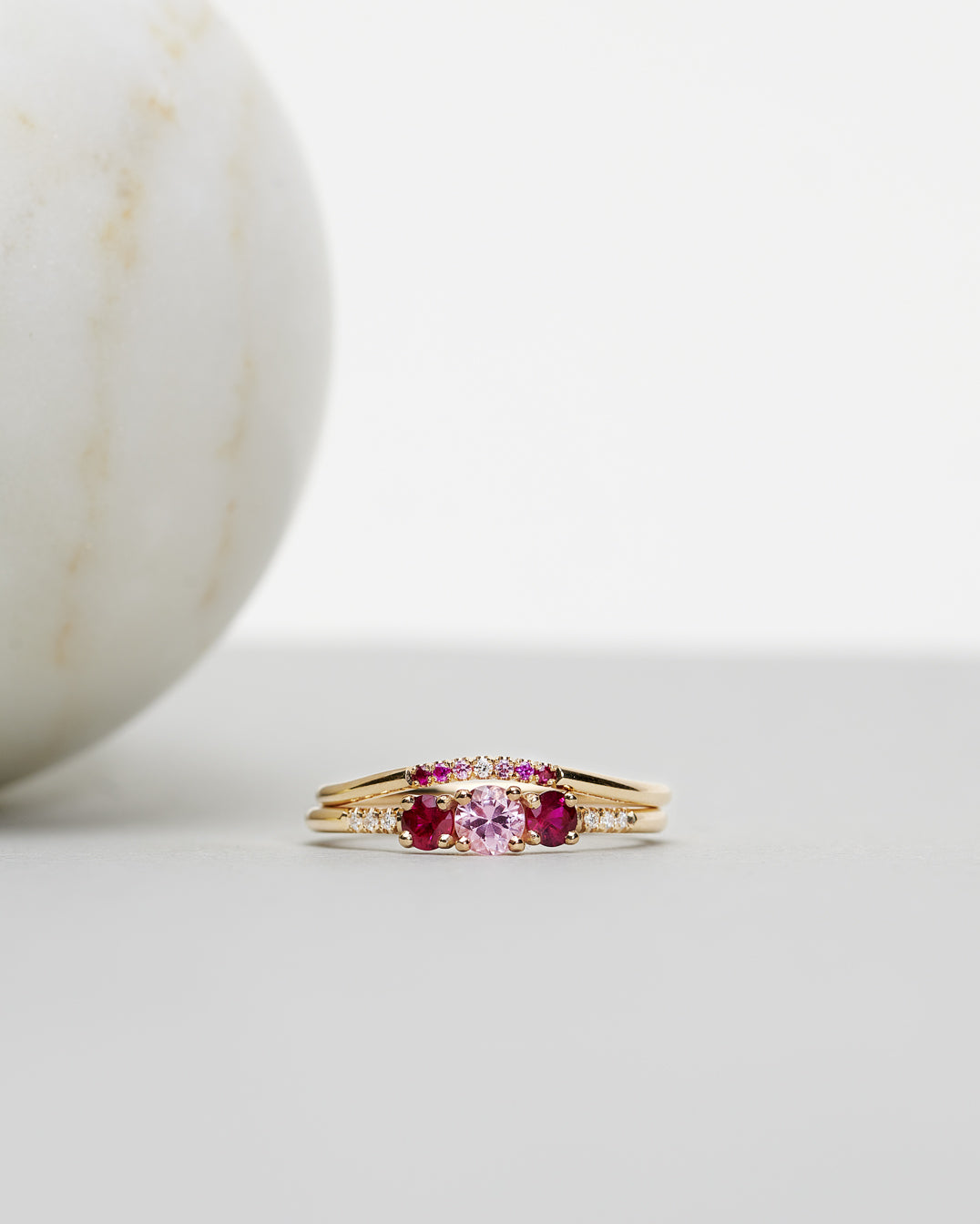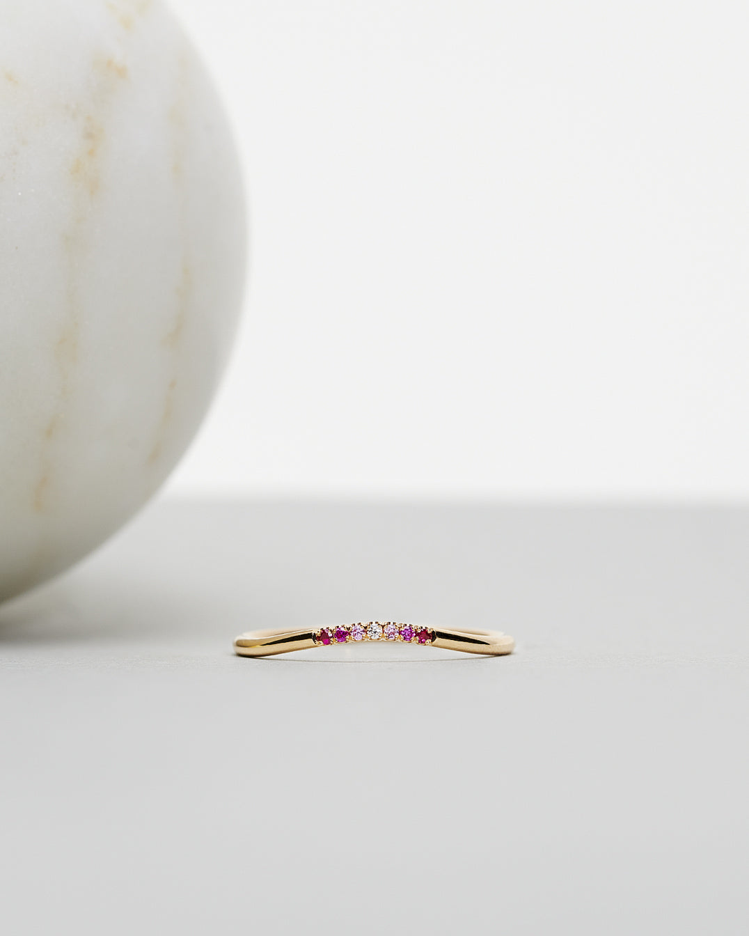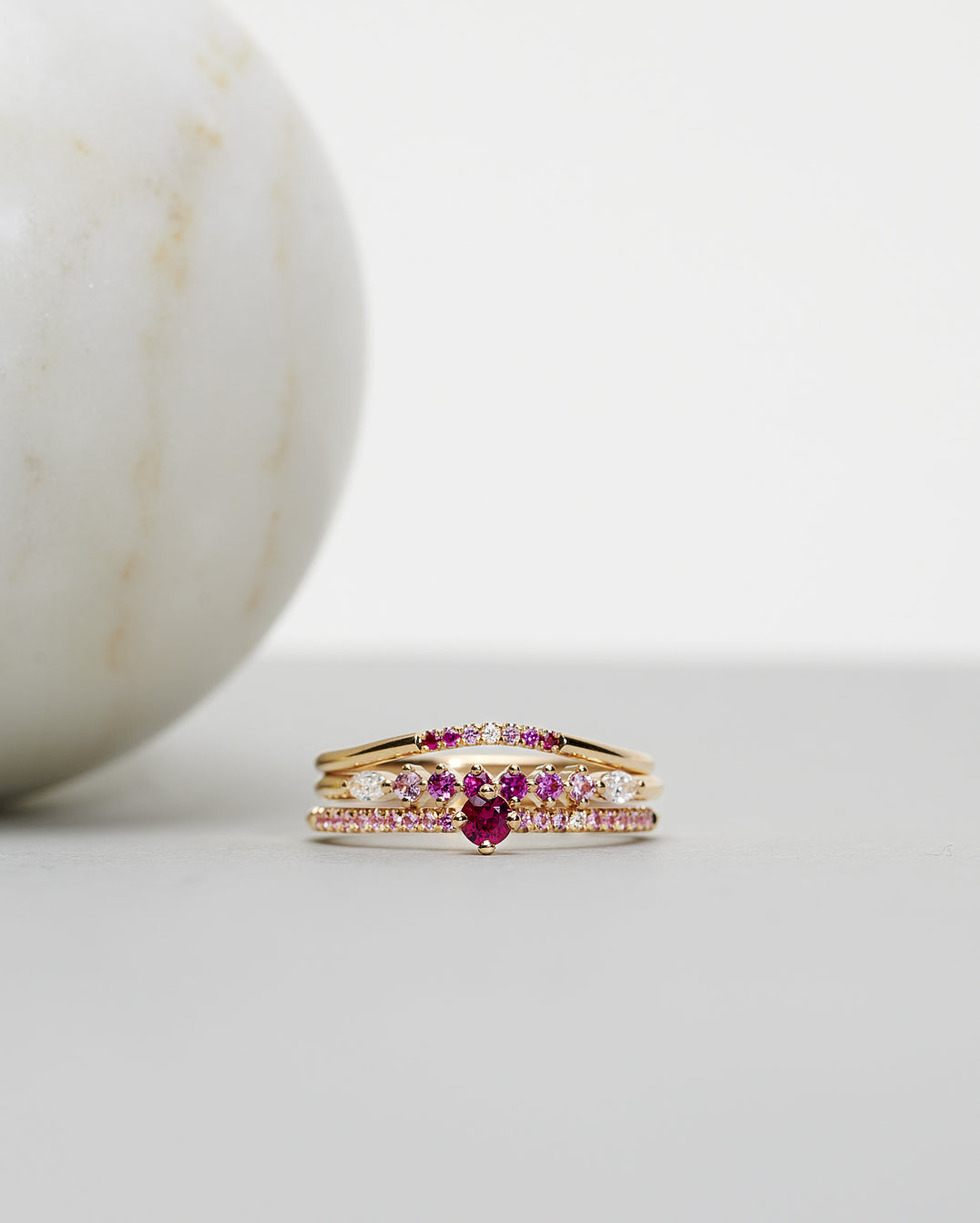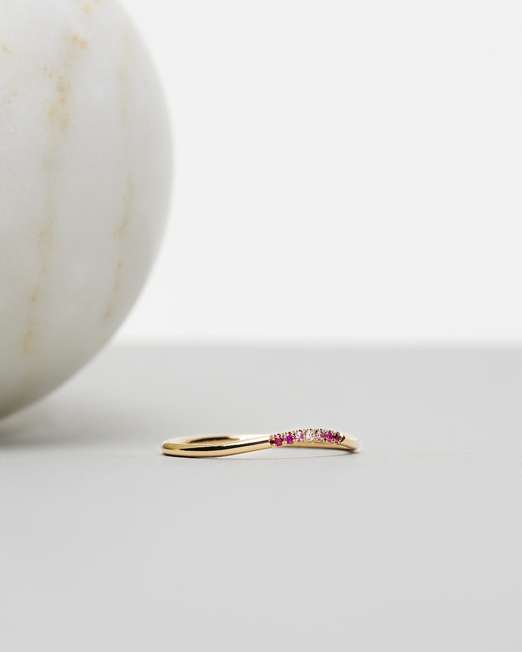 - Jade Petite Wave Enough Ring with Pink Sapphire Gradient