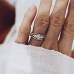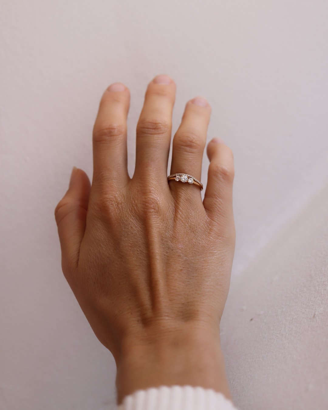 Jade Petite Wave Half Ring was first made to be stacked with Edith Ring (0.47 CT and 0.62 CT) and Greta Ring (0.57 CT and 0.72 CT), but it stacks just as beautifully with, for example: