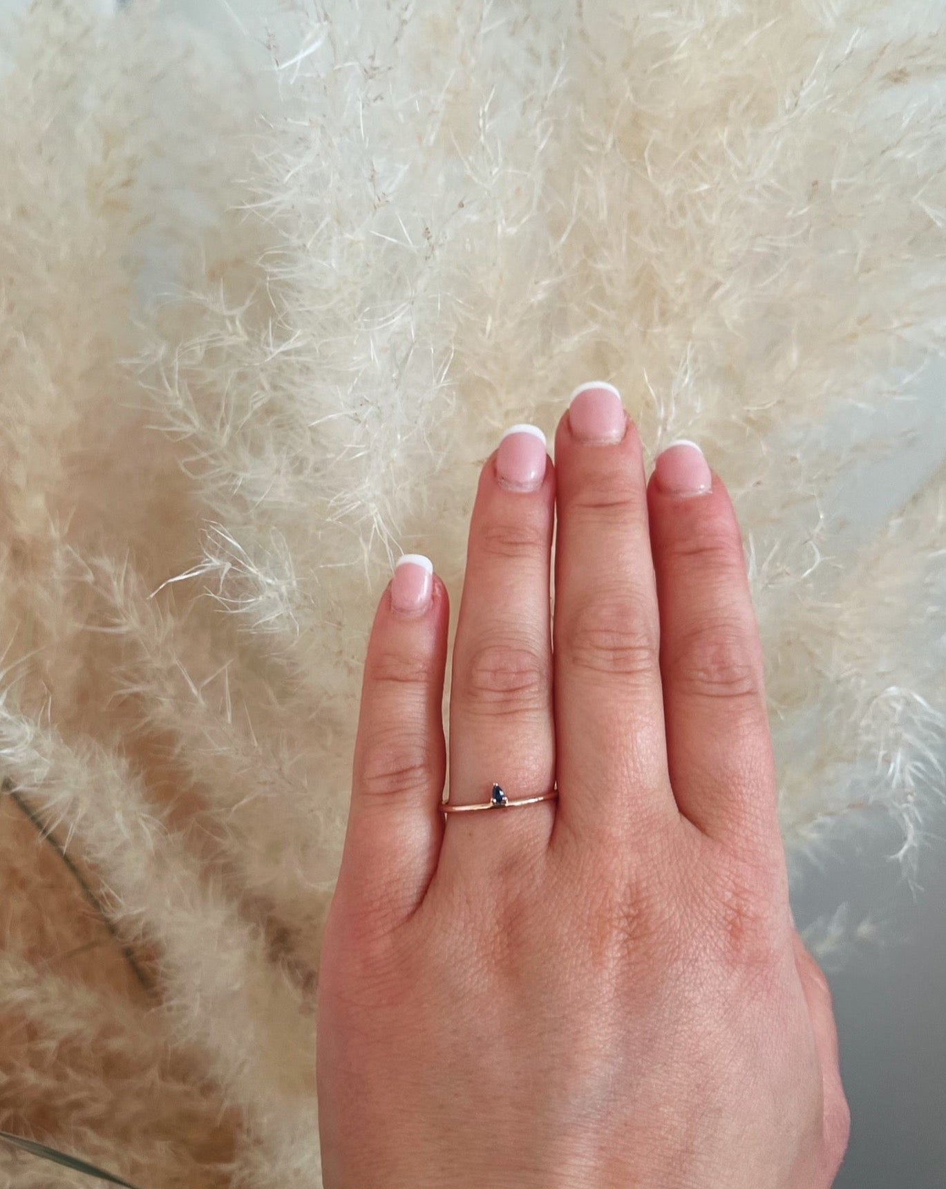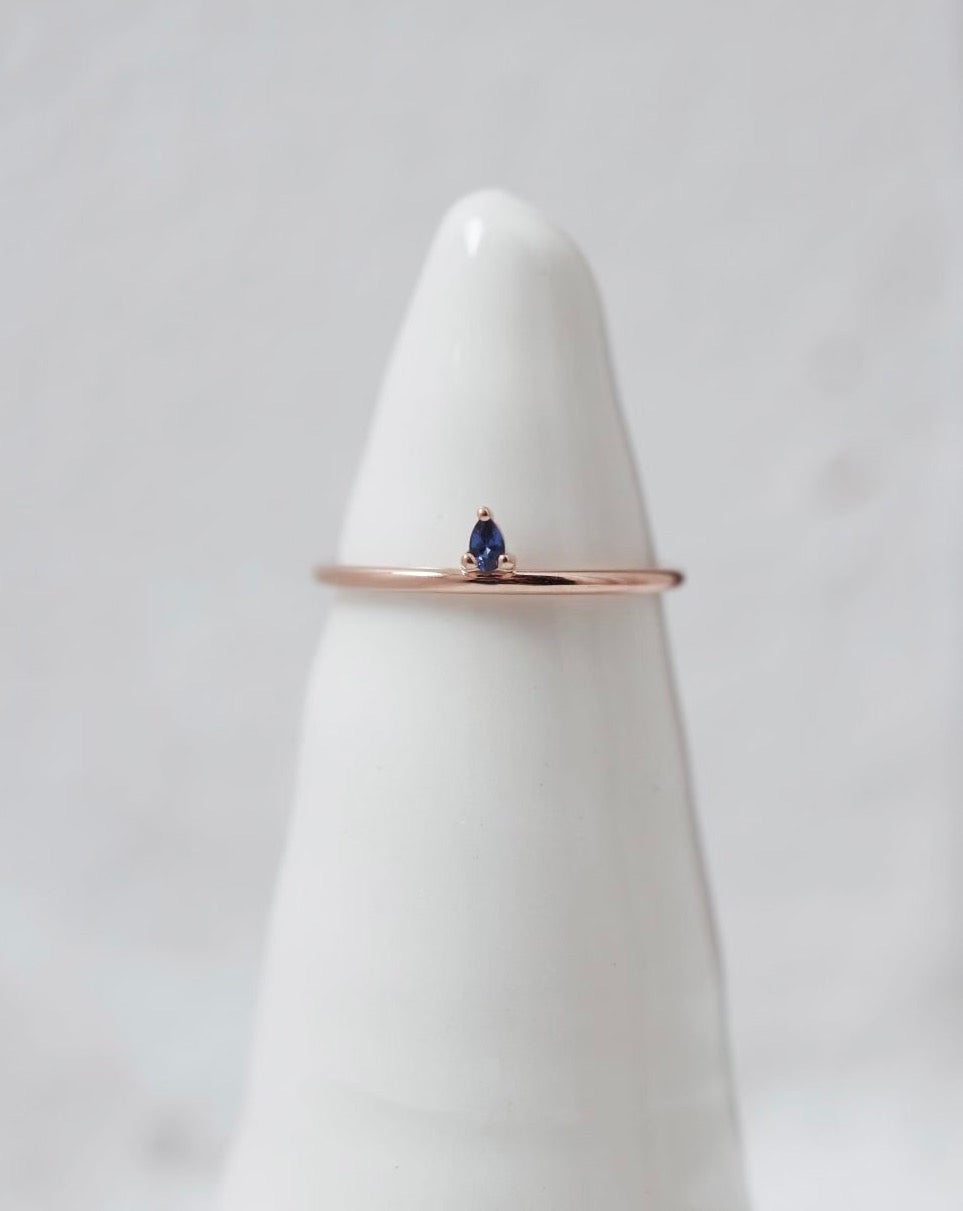 Finished: Lily Tiny Diamond Drop Ring in Rose Gold with Dark Blue Sapphire