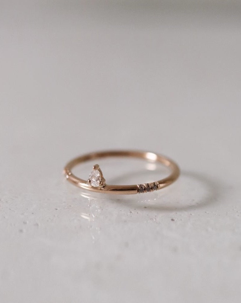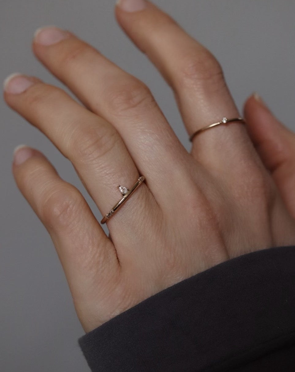 Lily Tiny Diamond Drop Ring is an all time favorite design of Cecilia's, Founder and Designer at Mumbaistockolm. Here we have made this loved model with a new twist- with six tiny gemstones set in the ringband! This adds the perfect amount of sparkle to an otherwise very minimalistic design. Sparkly but sophisticated in a perfect balance!