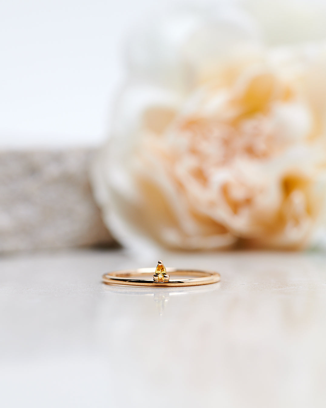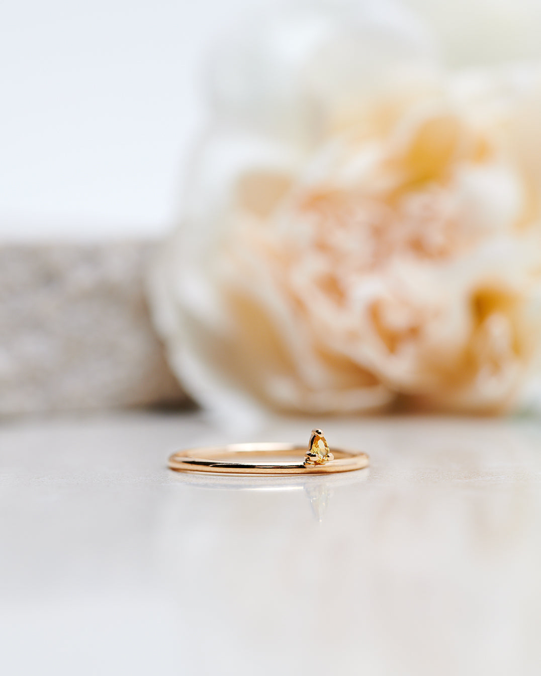 In this version of the Lily Tiny Drop Ring we've used a pretty yellow sapphire drop that goes wonderfully with the soft colour of the gold.
