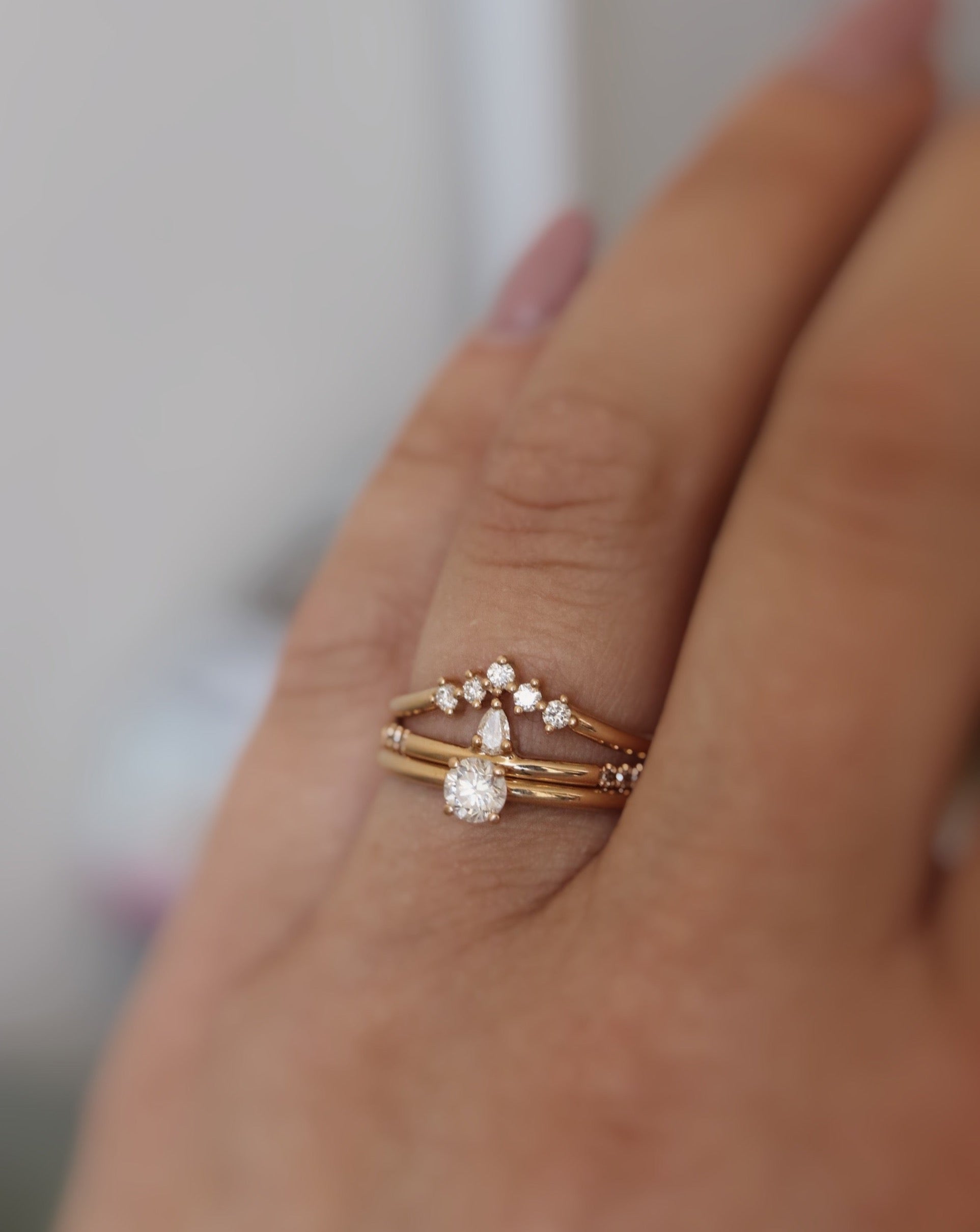 This ring looks just as beautiful alone as in a stack. Despite its low setting, it stacks wonderfully with most other rings from the collection.