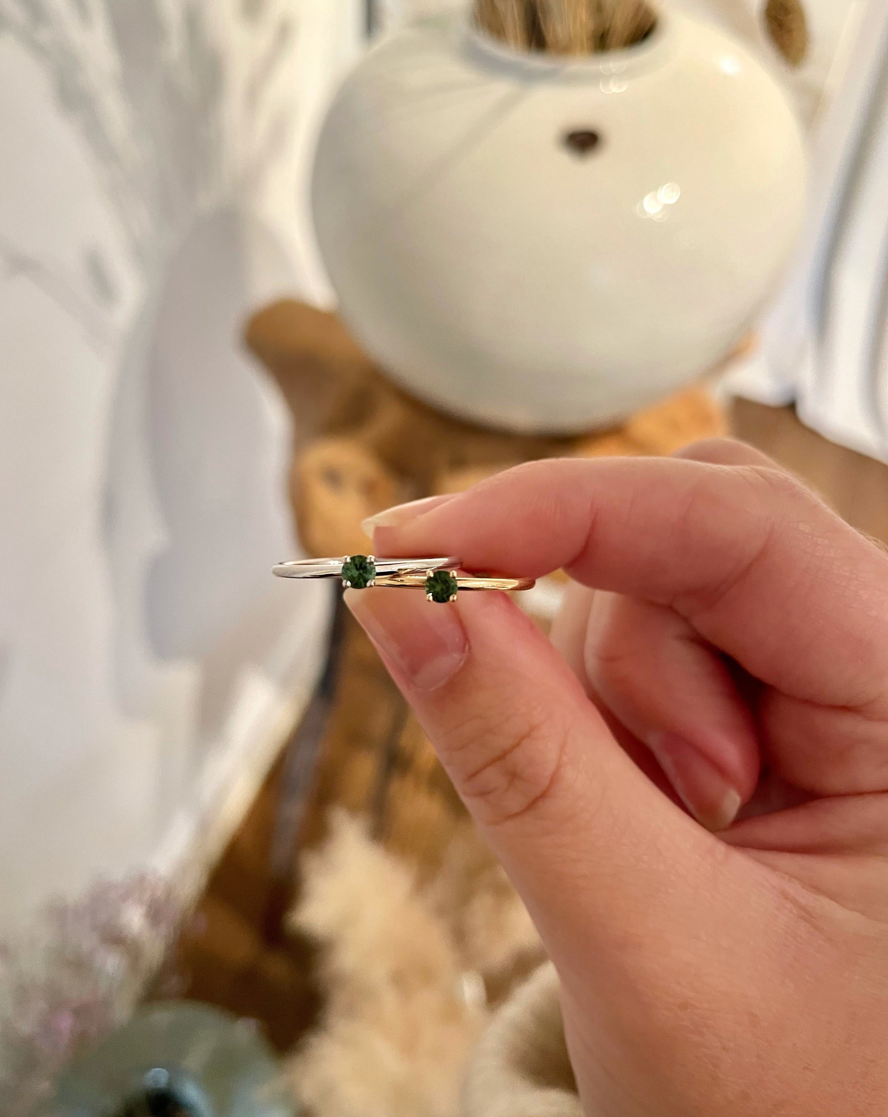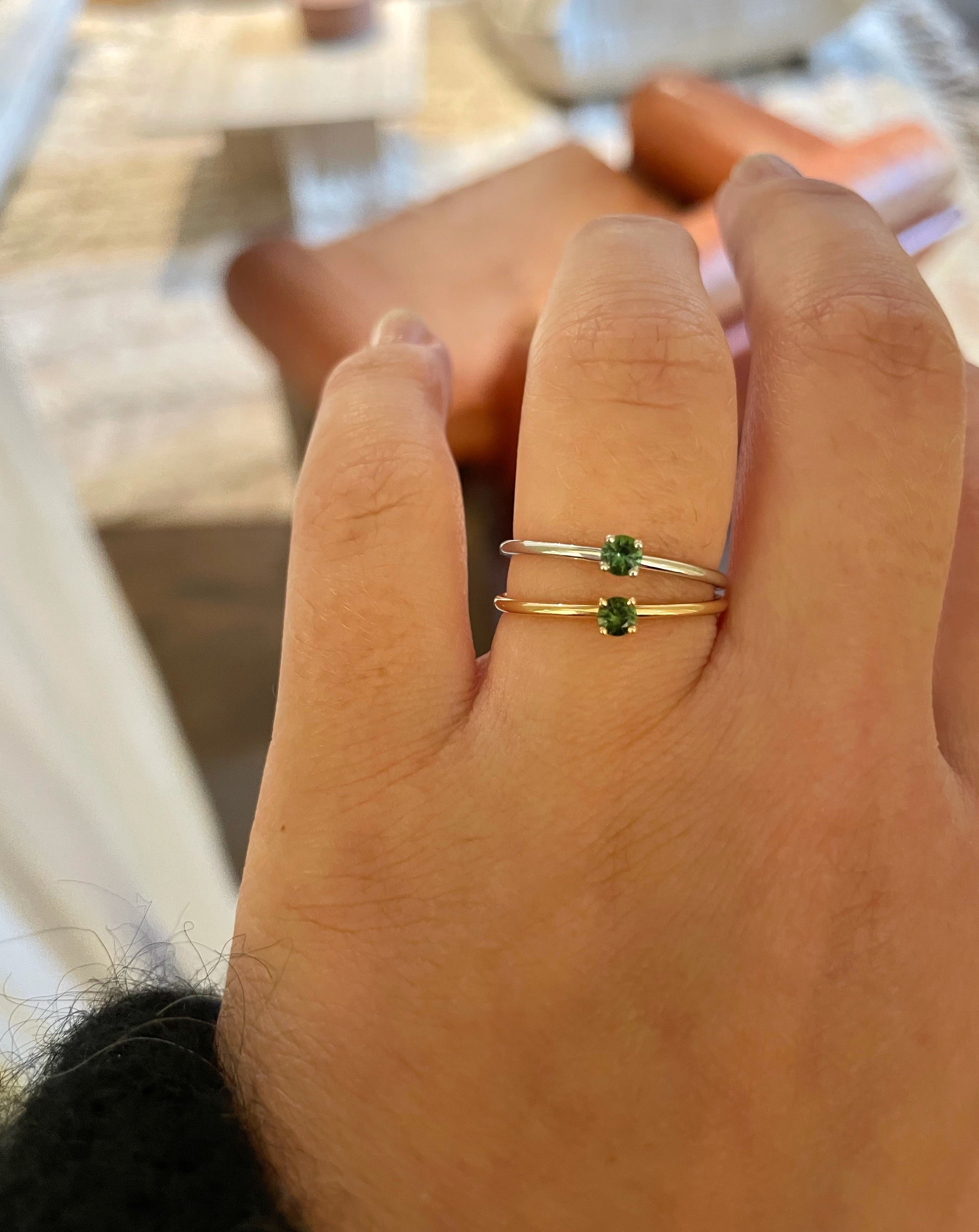 Low Set Not So Tiny Ring is a must-have in every jewelry collection. It's a petite, simple diamond ring with a small gemstone, perfect for everyday-wear!