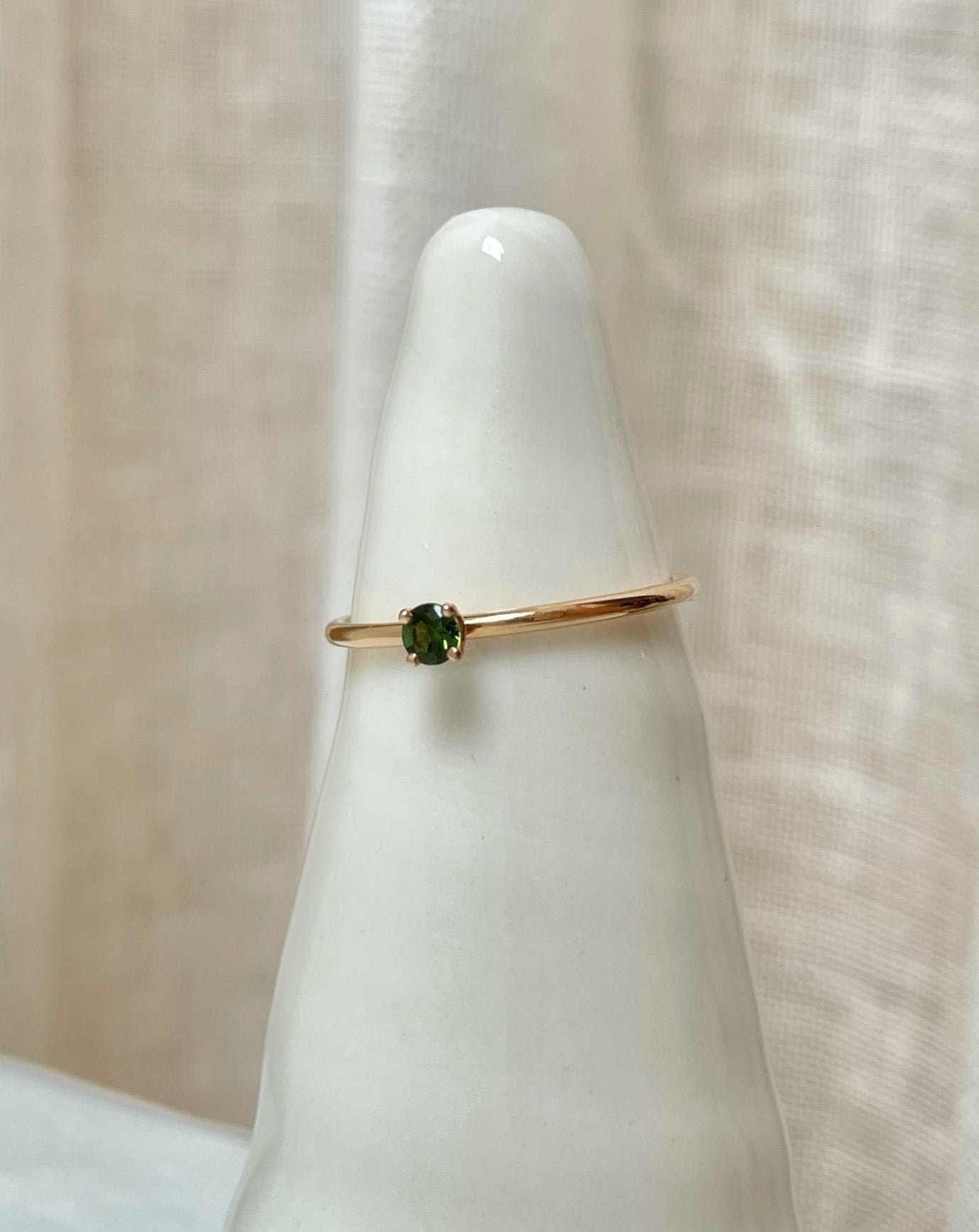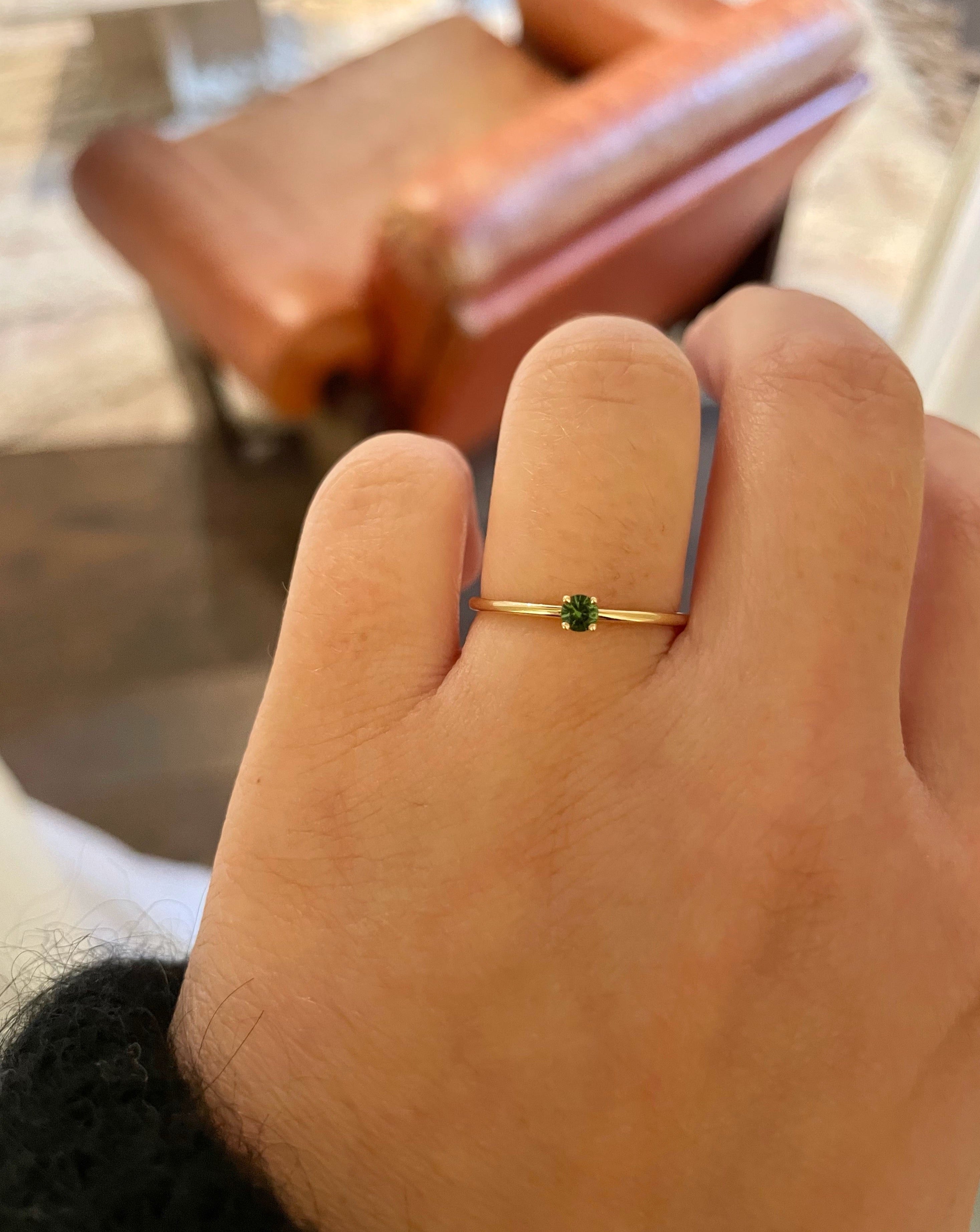 Finished: Low Set Not So Tiny Ring with Dark Green Tourmaline - Yellow Gold