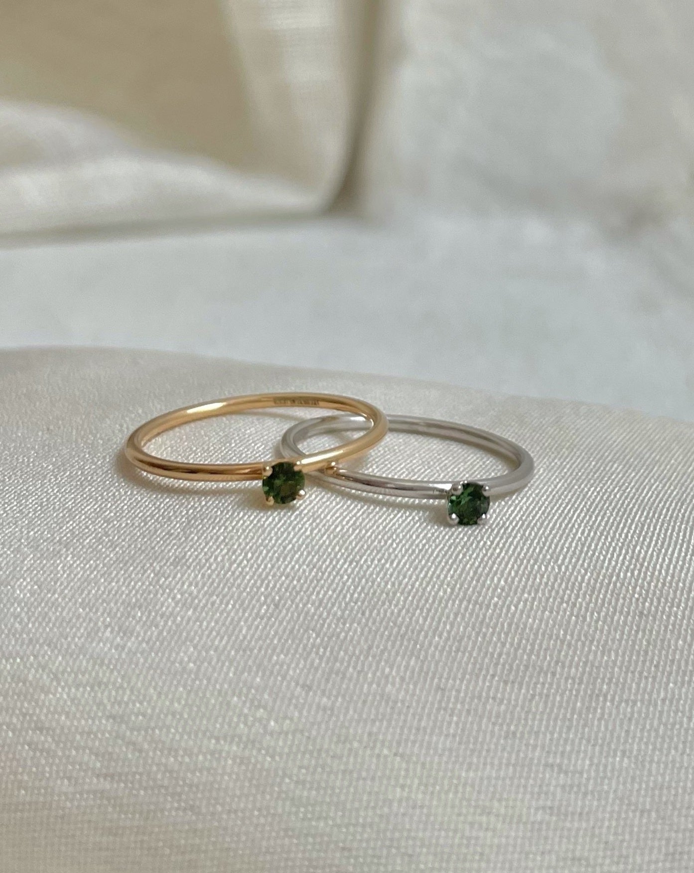 Tourmalines rank a hardness of 7-7,5 on Moh's Scale of Hardness and come in many different colors. In this ring we have used a stunning dark green tourmaline.