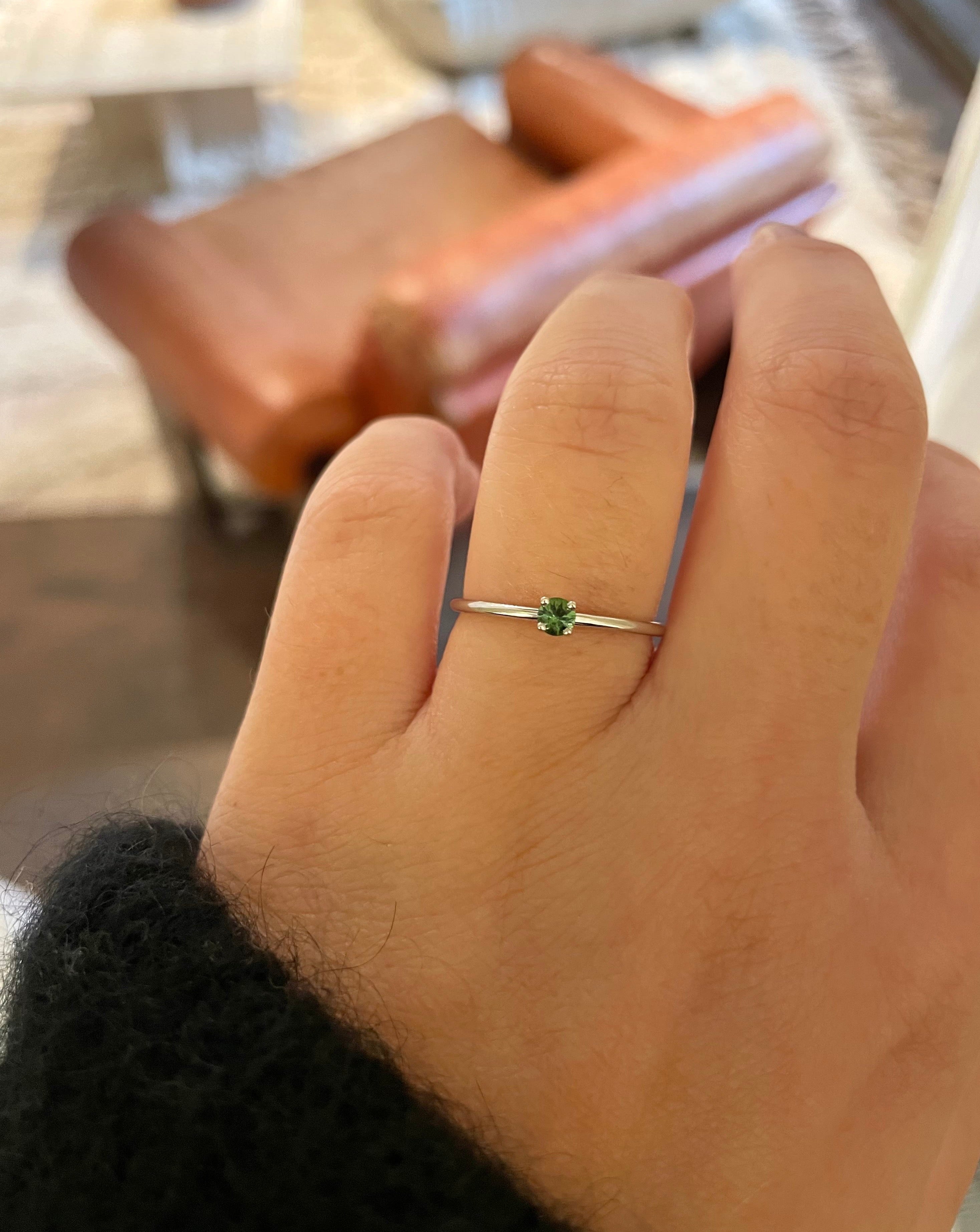 Low Set Not So Tiny Ring is a must-have in every jewelry collection. It's a petite, simple diamond ring with a small gemstone, perfect for everyday-wear!