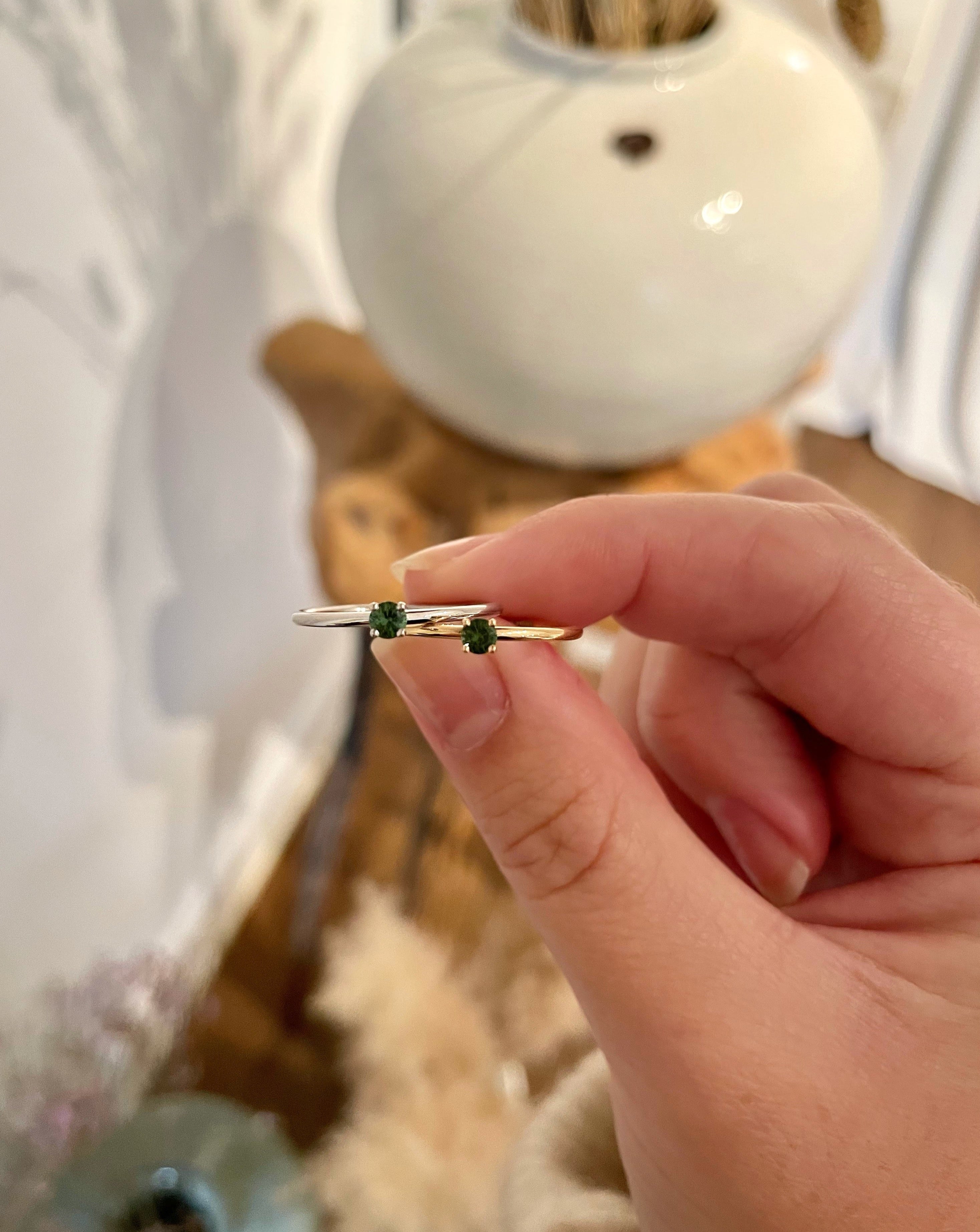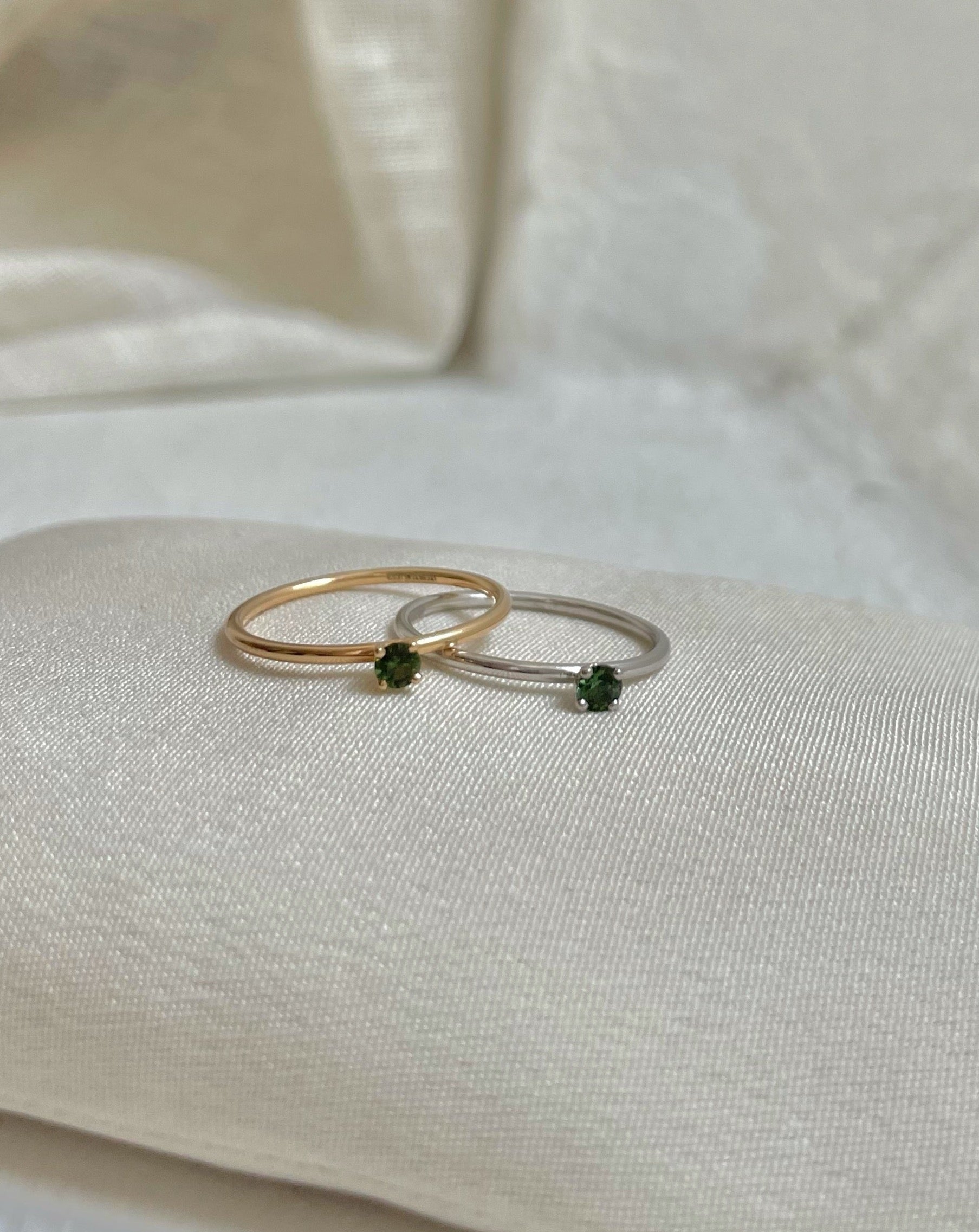 Tourmalines rank a hardness of 7-7,5 on Moh's Scale of Hardness and come in many different colors. In this ring we have used a stunning dark green tourmaline.