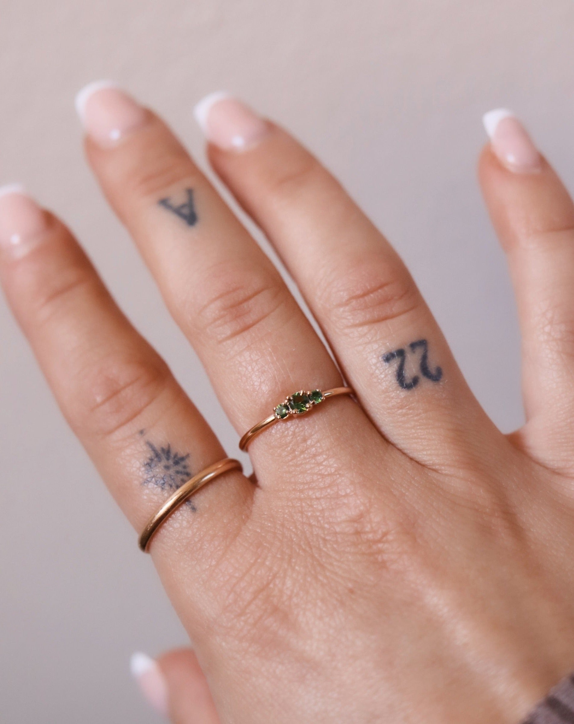 Finished: Mini Edith Ring with Dark Green Tourmalines