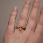 This version of the ring combines yellow gold and a yellow sapphire. This gives the ring a uniform look and a beautiful flow, with a discreet sparkle from the sapphire.