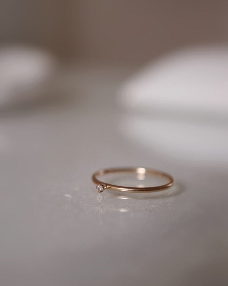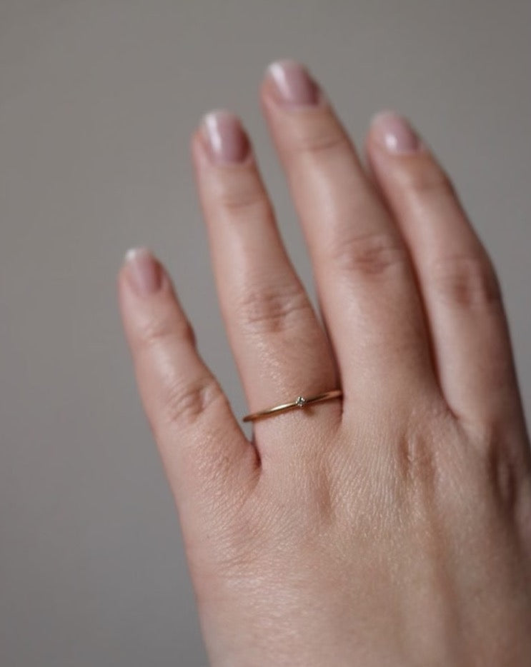 This is our version of the little diamond ring - Tiny Diamond Ring. Here seen with a sweet diamond that adds a touch of sparkle to the ring.