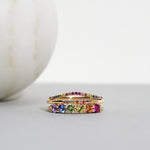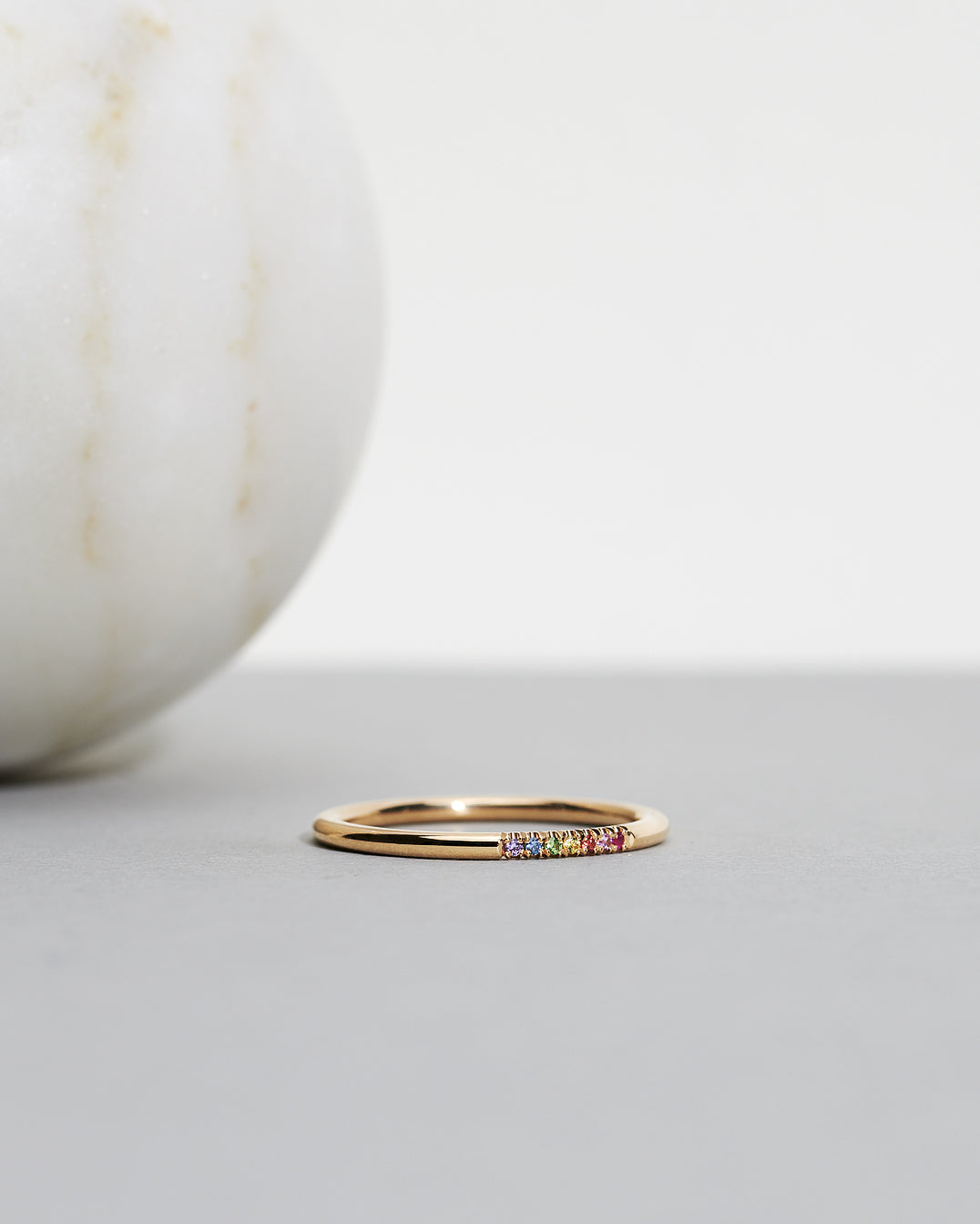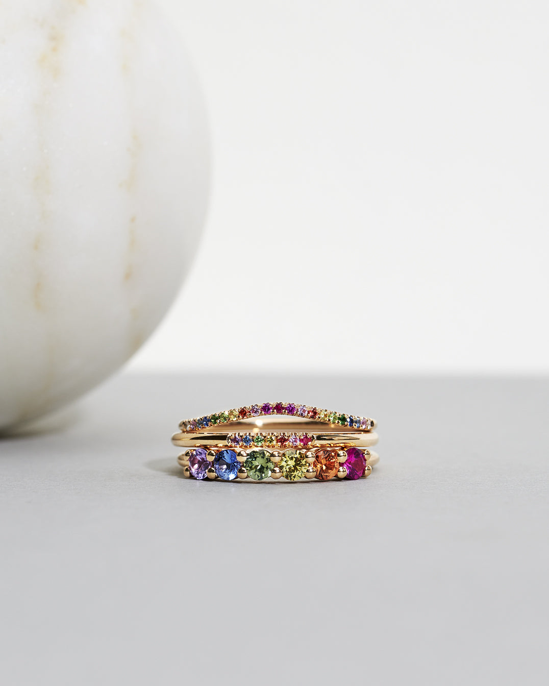 Jade Petite Enough Ring is a lovely simple ring with seven small gemstones. This version features a gradient of bright rainbow colors.