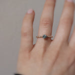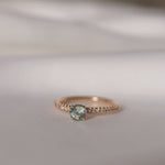 Finished: Solitaire Sparkle Ring with a Bluish Olive Green Sapphire and Champagne Diamonds