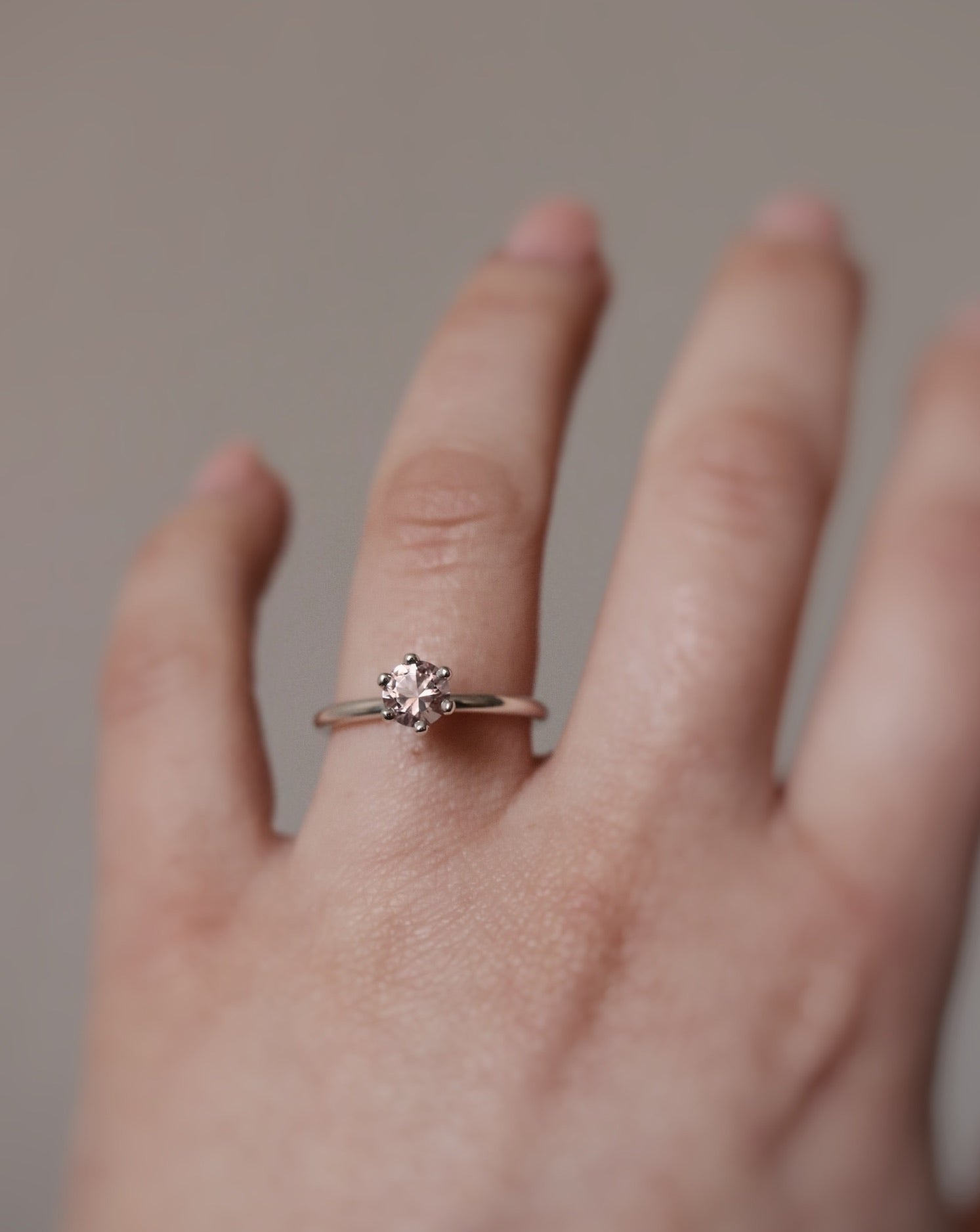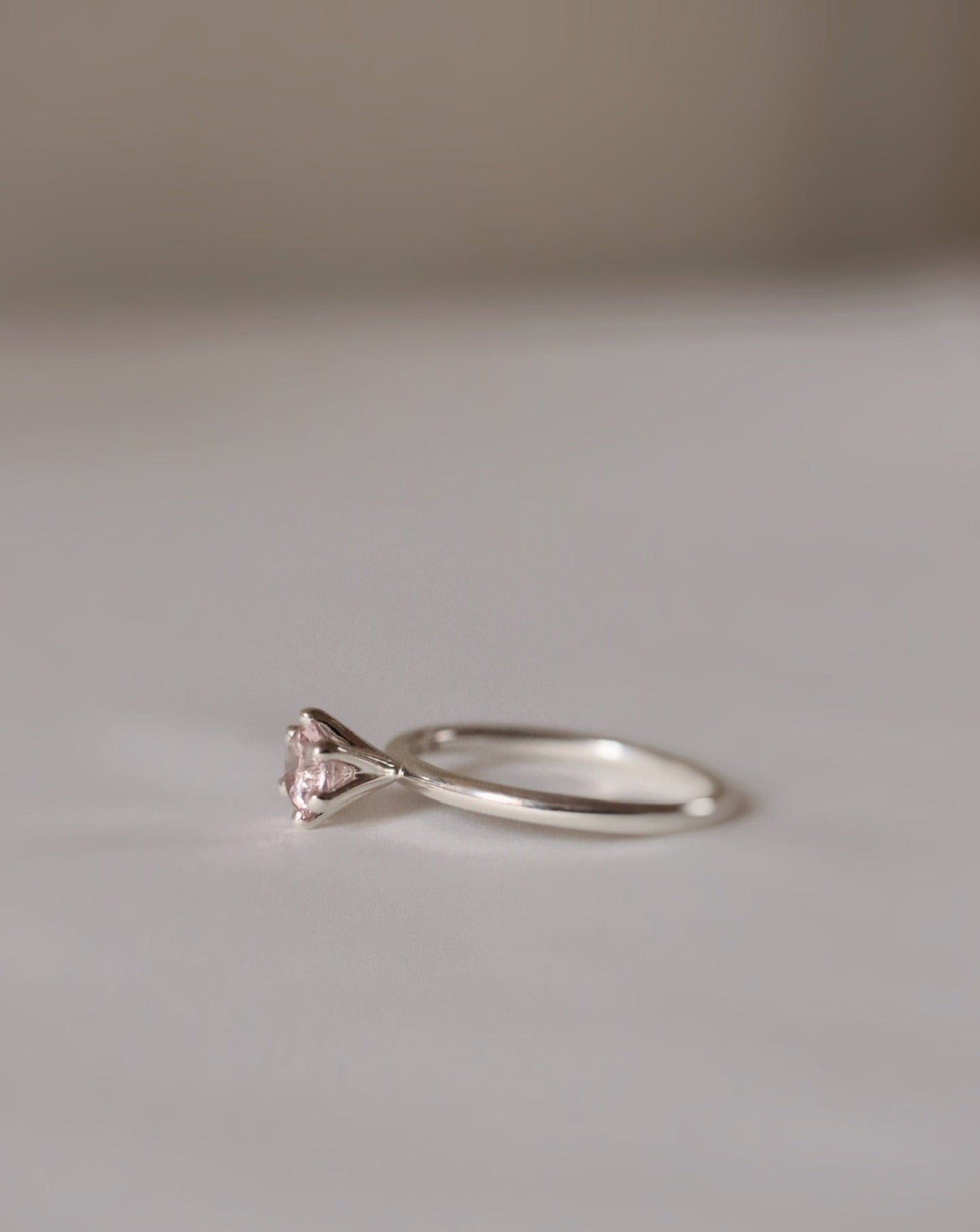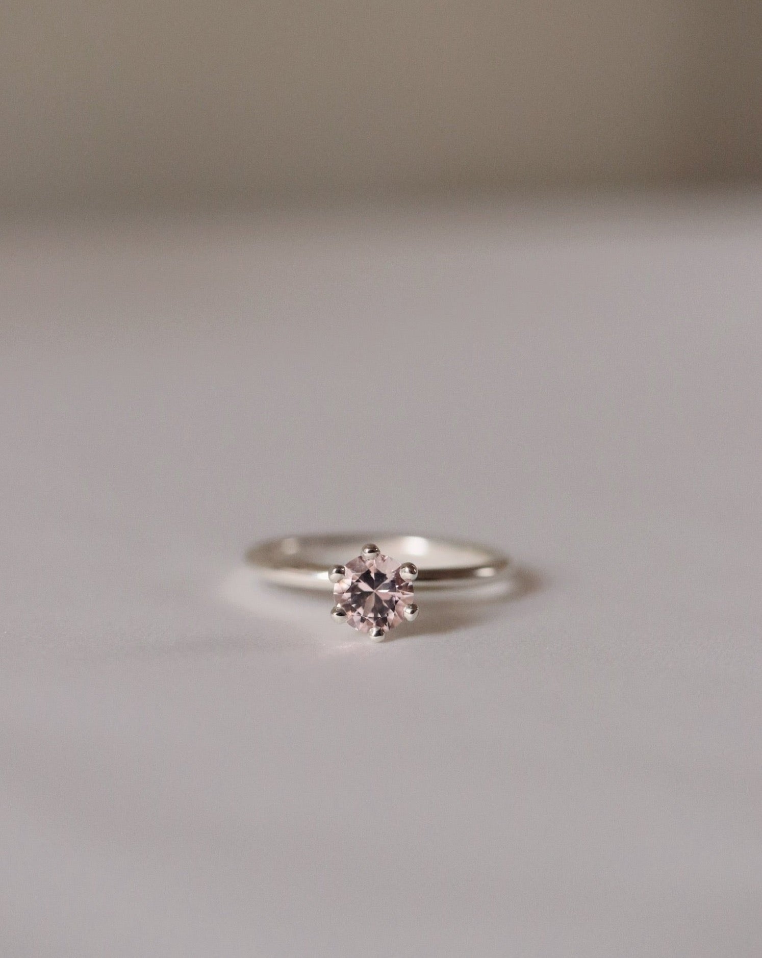 Finished: High-Set Solitaire Ring in Silver with A Light Pink Morganite