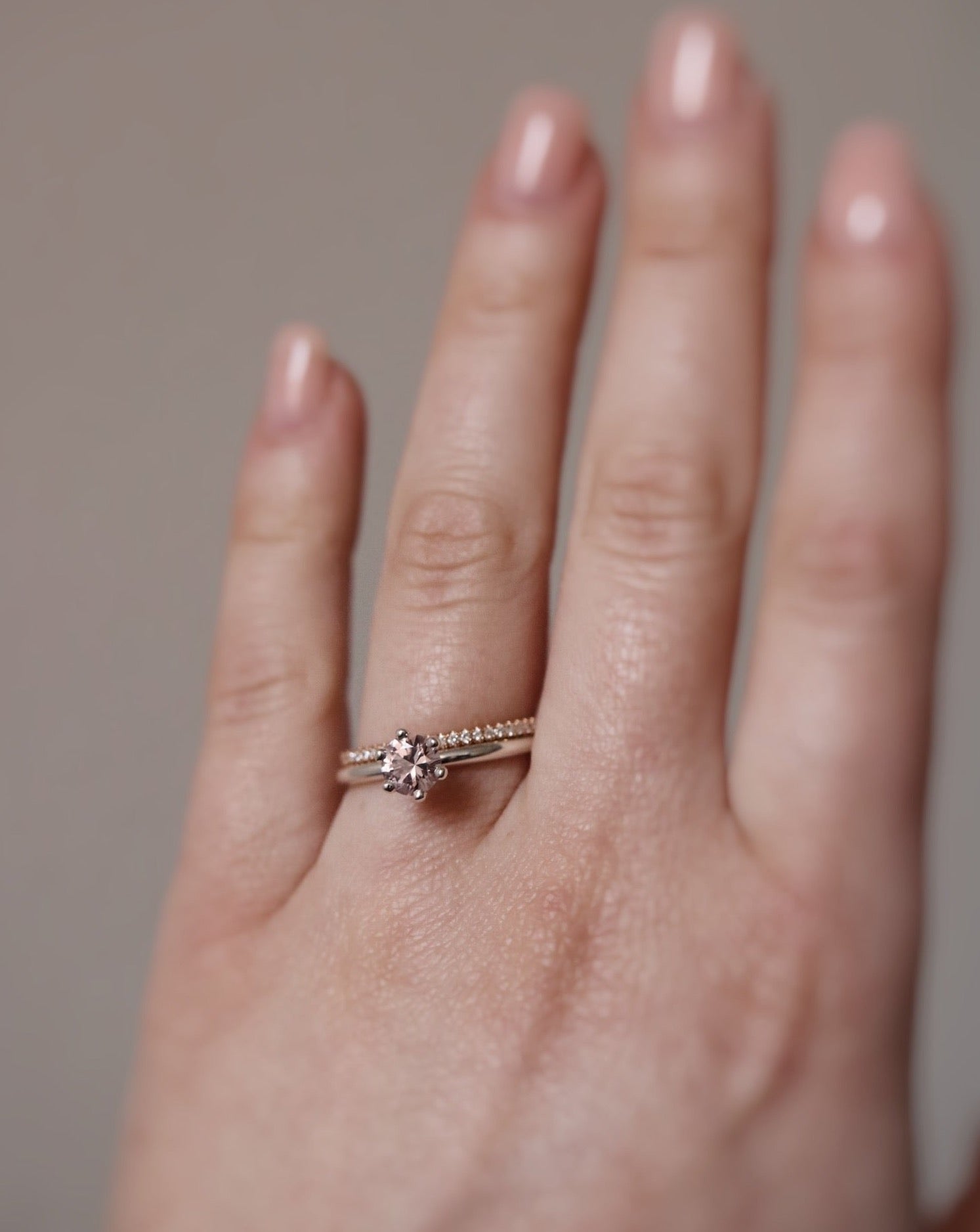 We source all our round morganites from Nigeria, where we have a partnership with a specialist miner. Our close partnership ensures that all the morganites we purchase are natural, ethical and follow our accepted standards for morganite treatment. The morganite in this ring is sourced from the Shaki area of the Oyo region of southwestern Nigeria.