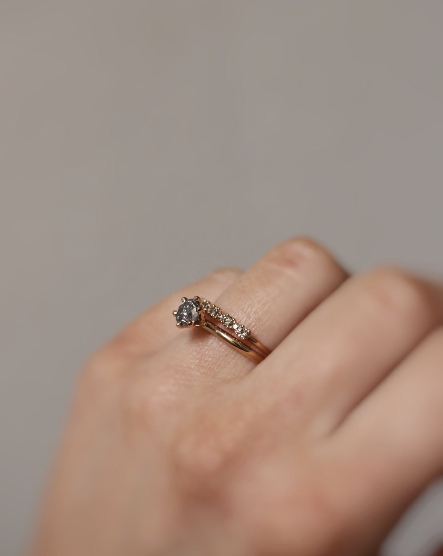 This ring looks beautiful alone but unlike many traditional solitaire rings, it is also perfect for stacking.