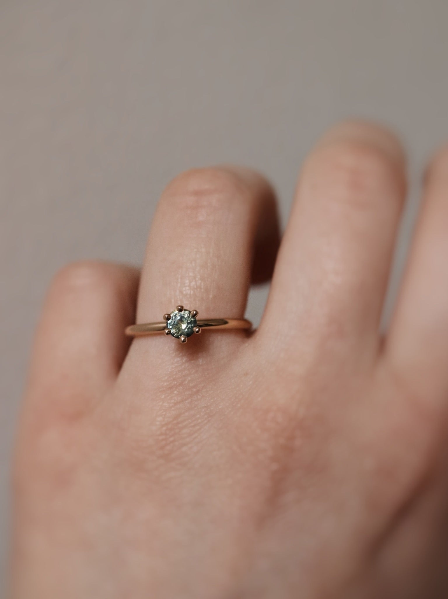 The Solitaire Ring is the perfect solitaire ring with its clean, simple design that will never go out of style. This model is perfect for you who are looking for a ring that really pops, since the high setting makes the gemstone appear bigger. Unlike many traditional solitaire rings, this ring is also perfect for stacking!