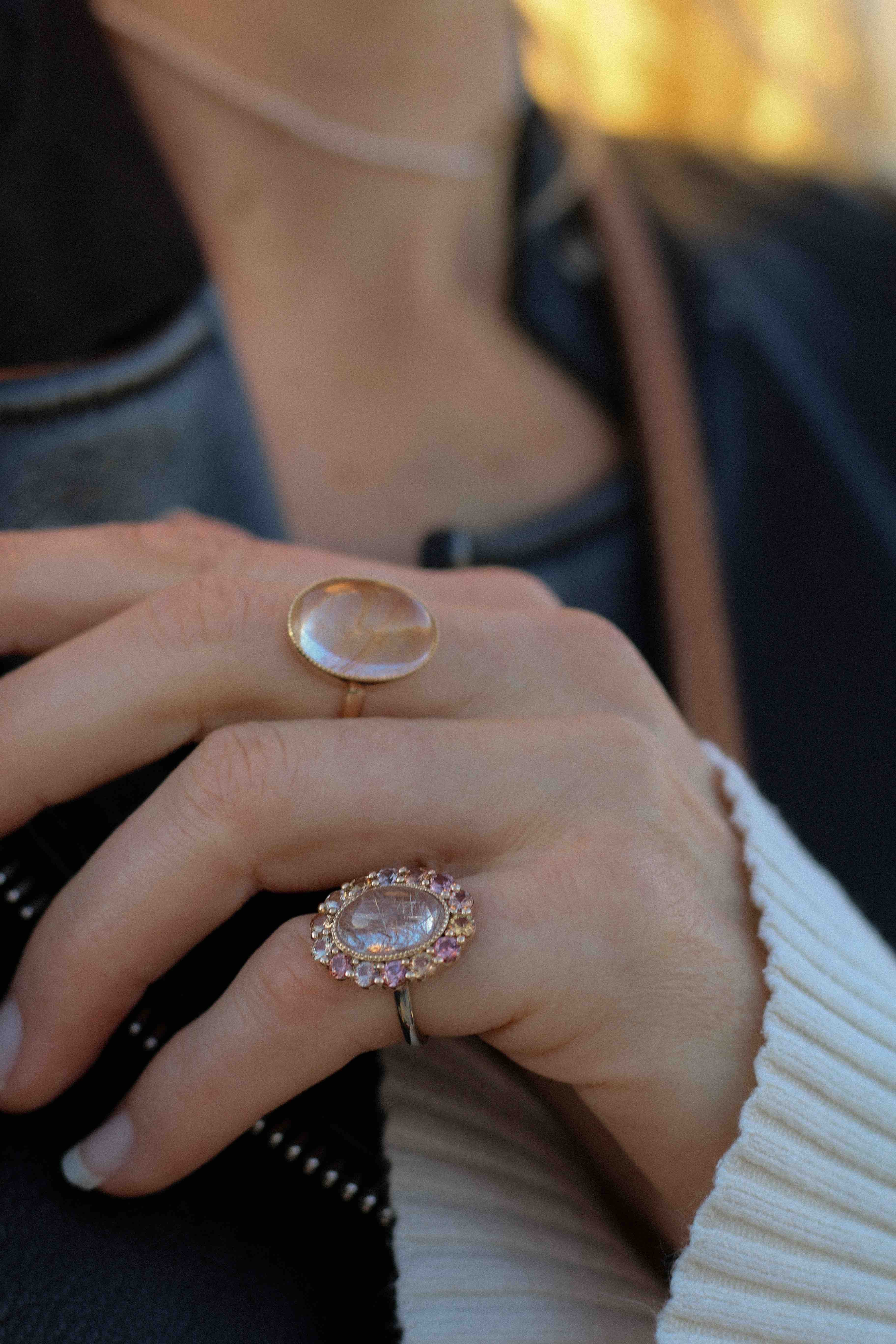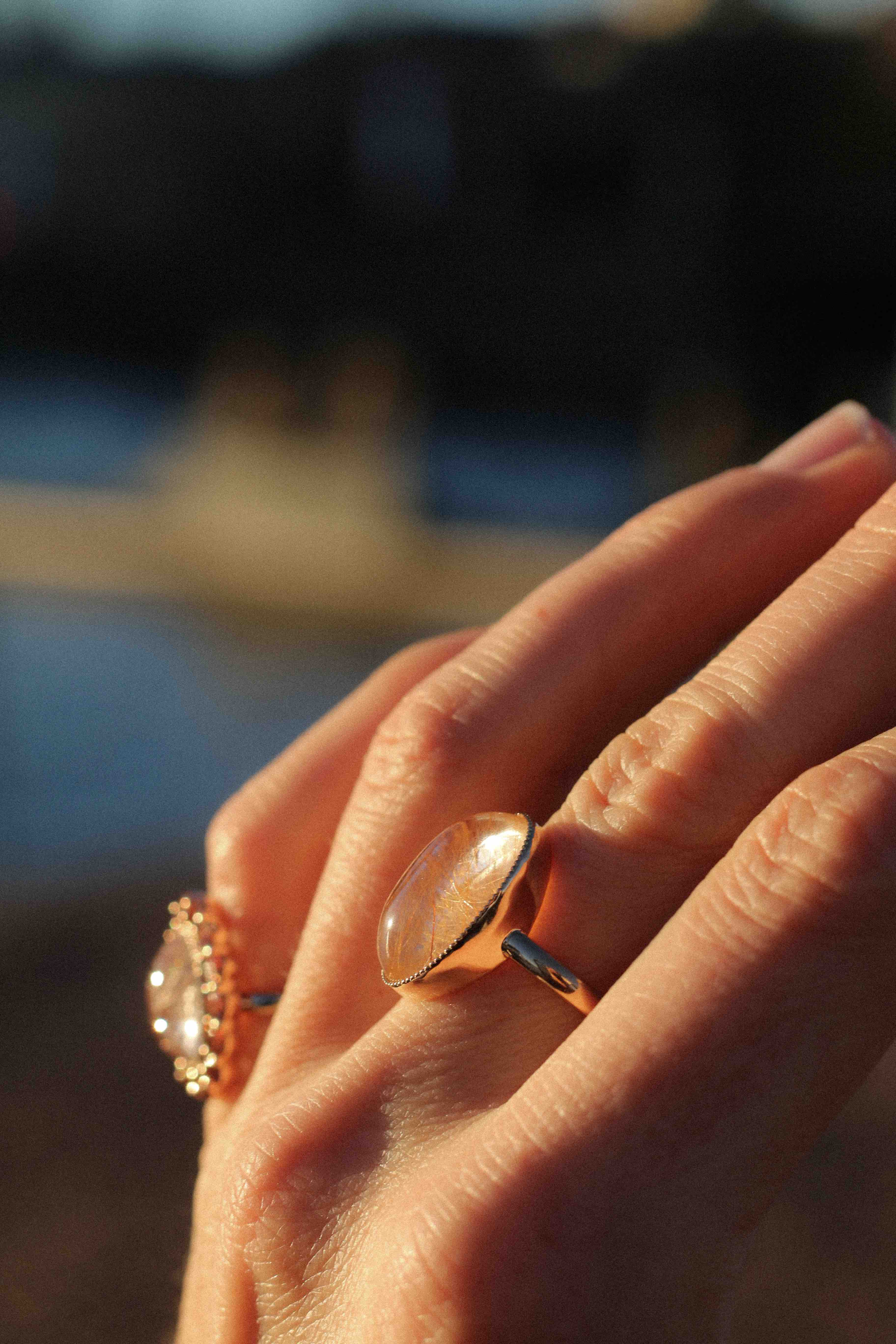 En statementring med otrolig intensitet och livfullhet, tack vare den vackra, sandfärgade rutilkvartsen.