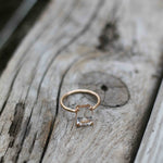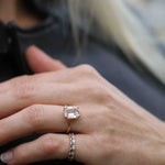 Fattningen är öppen på sidorna så att så mycket av stenen som möjligt får synas - detta är en ring där den vita topasen har huvudrollen!
