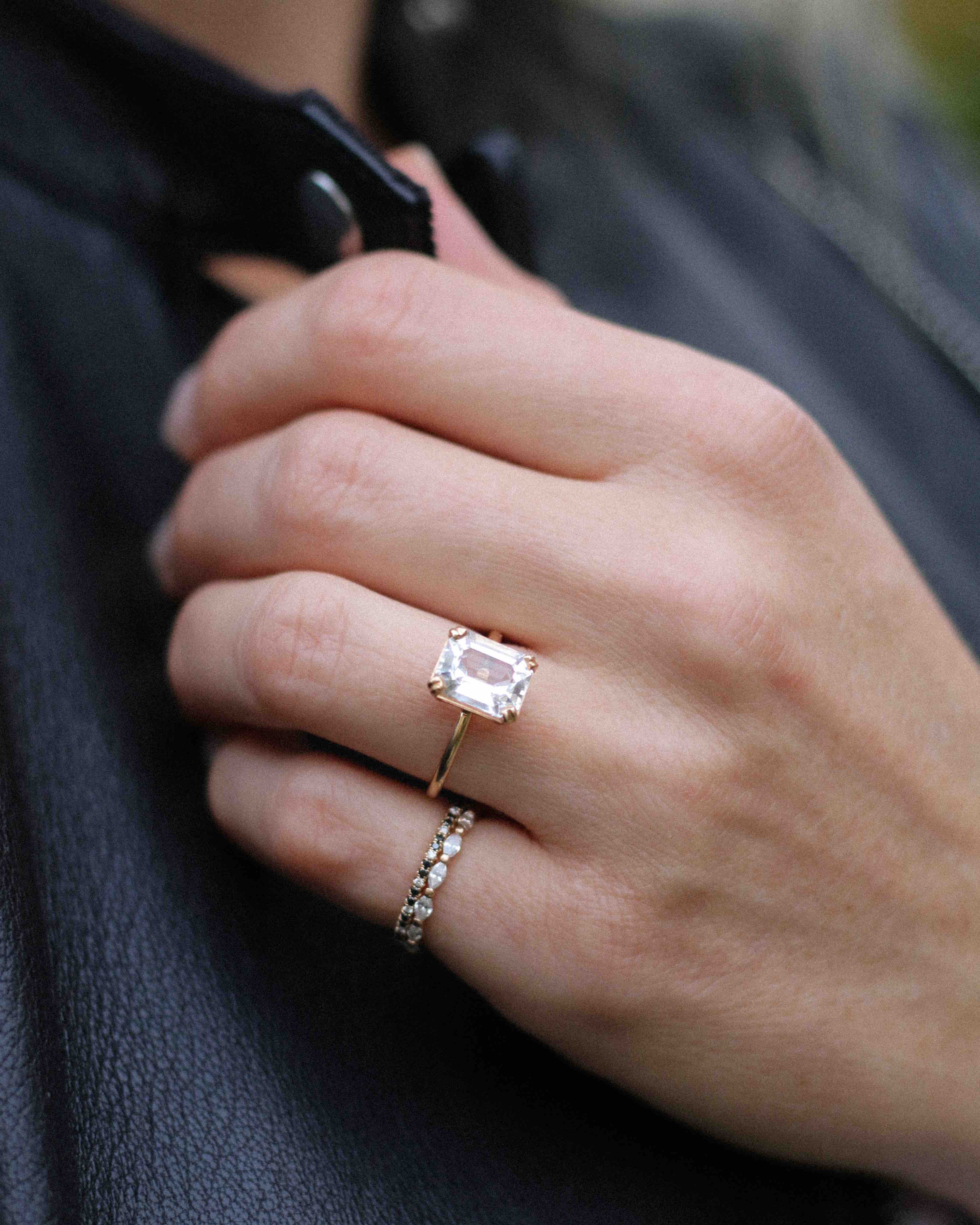 Samtidigt har stenen endast ett subtilt glitter jämfört med exempelvis den runda smaragdslipningen som är översållad av små små facetter (ljusreflekterande ytvinklar). Det gör den till en slipning som passar dig som kanske kommit ett steg längre i ditt smyckesintresse!