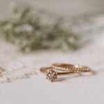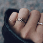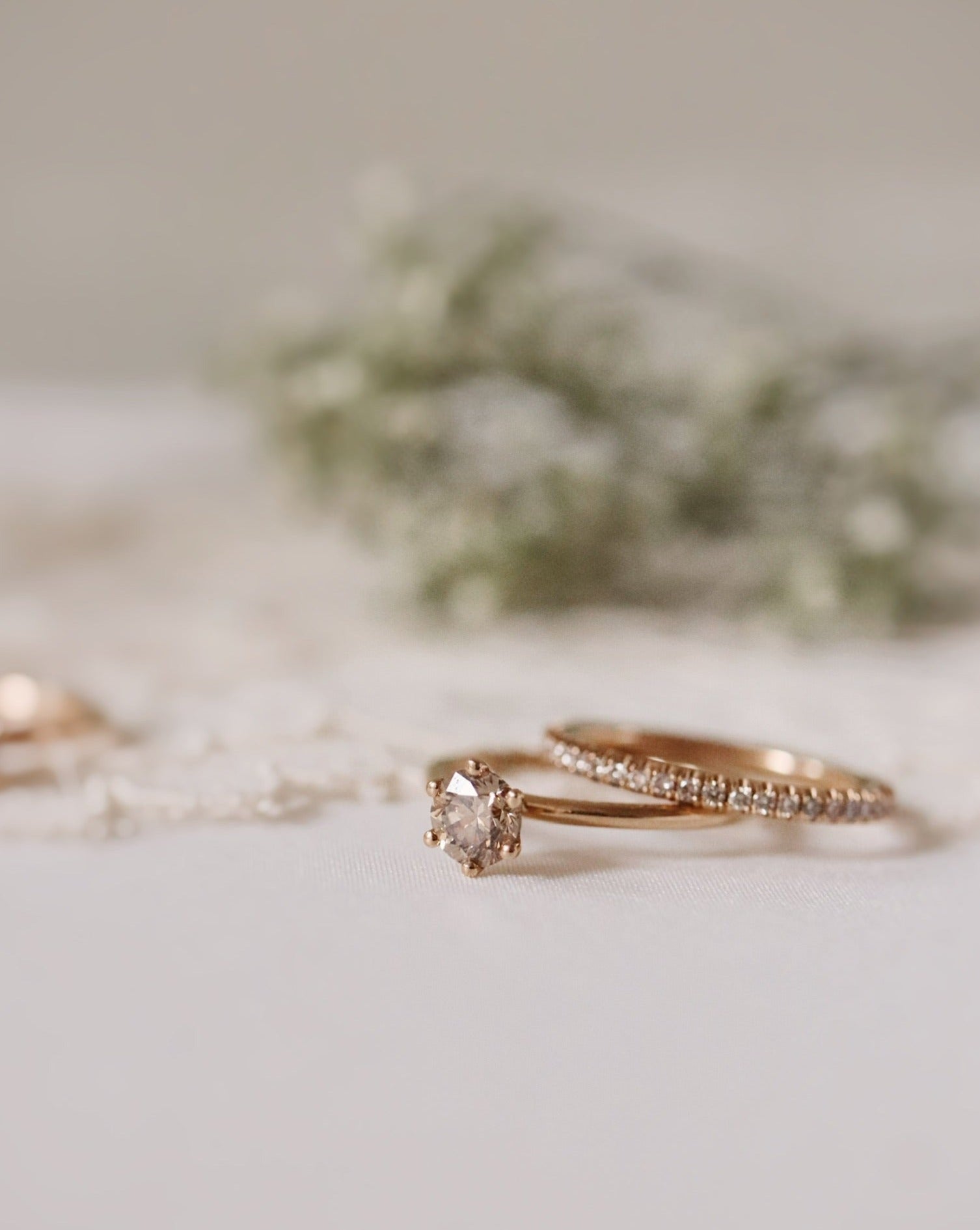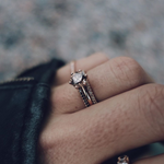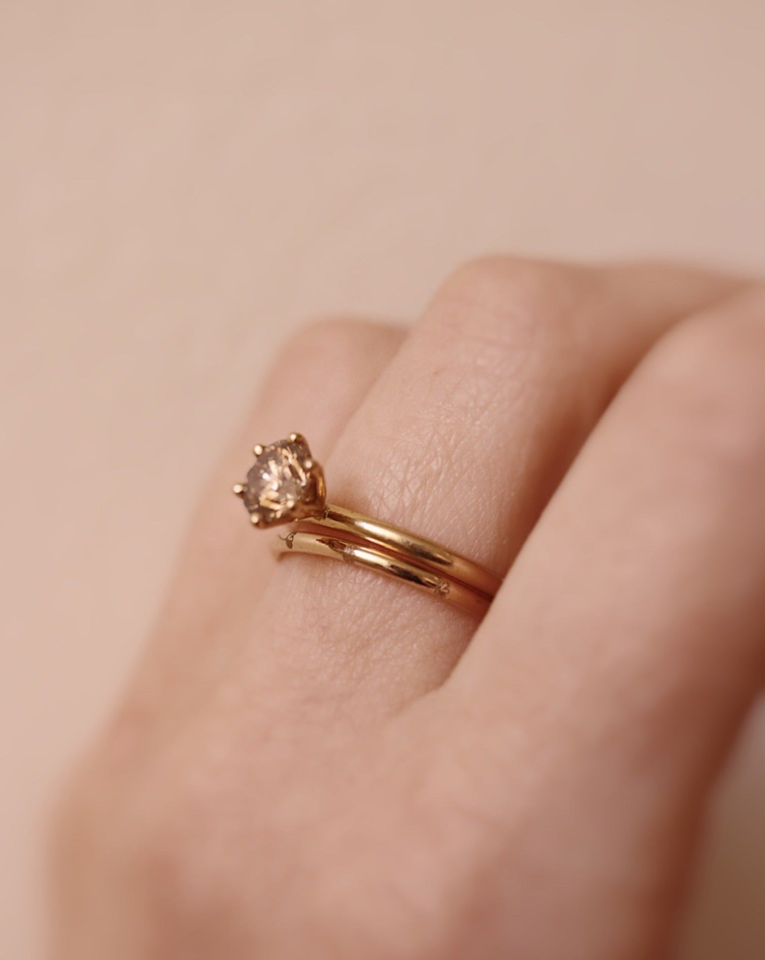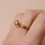 It also stacks beautifully with almost any other ring in our collection (except Edith Ring, Greta Ring and Elise Ring that require curved stacking bands). Here you see it stacked with:
