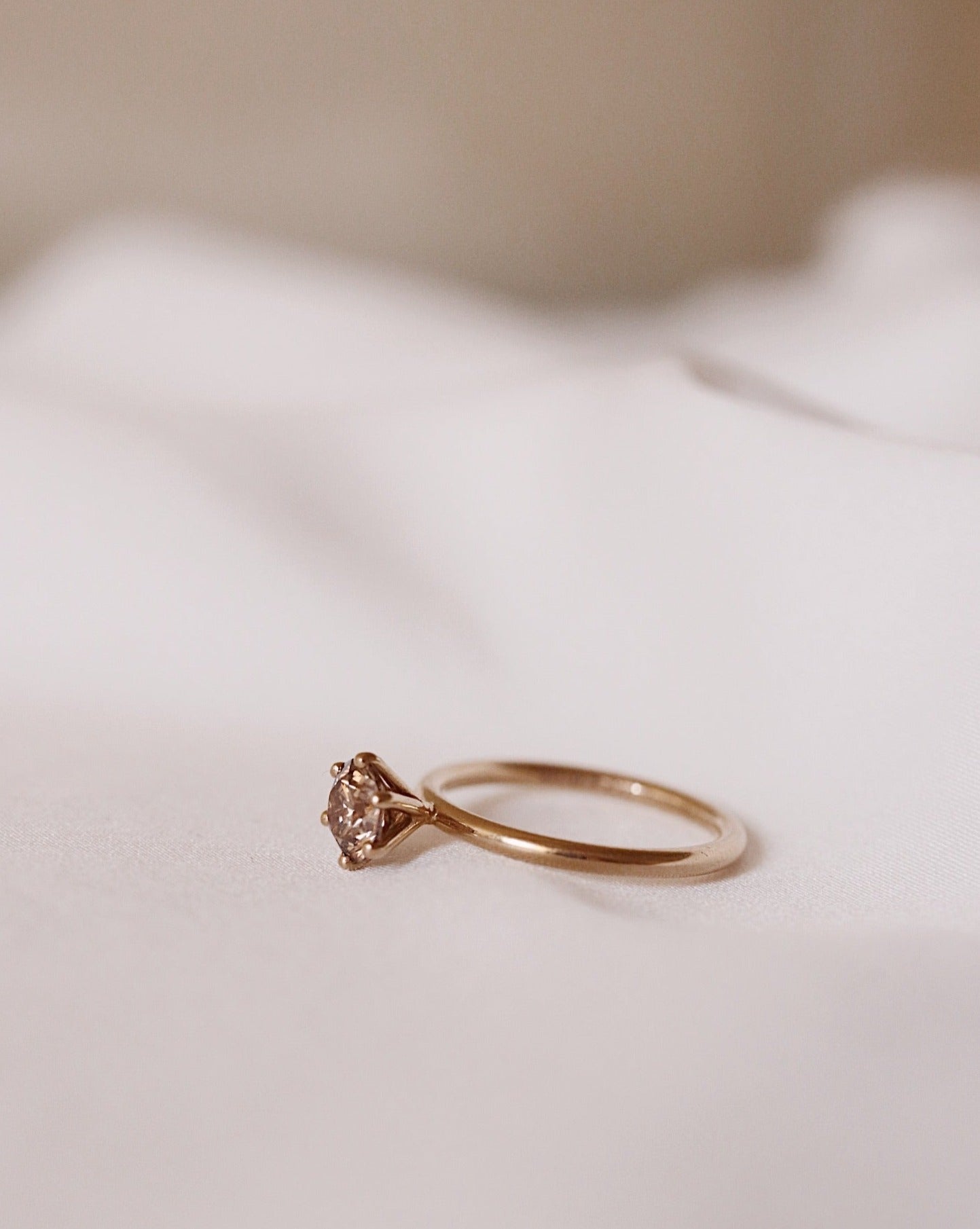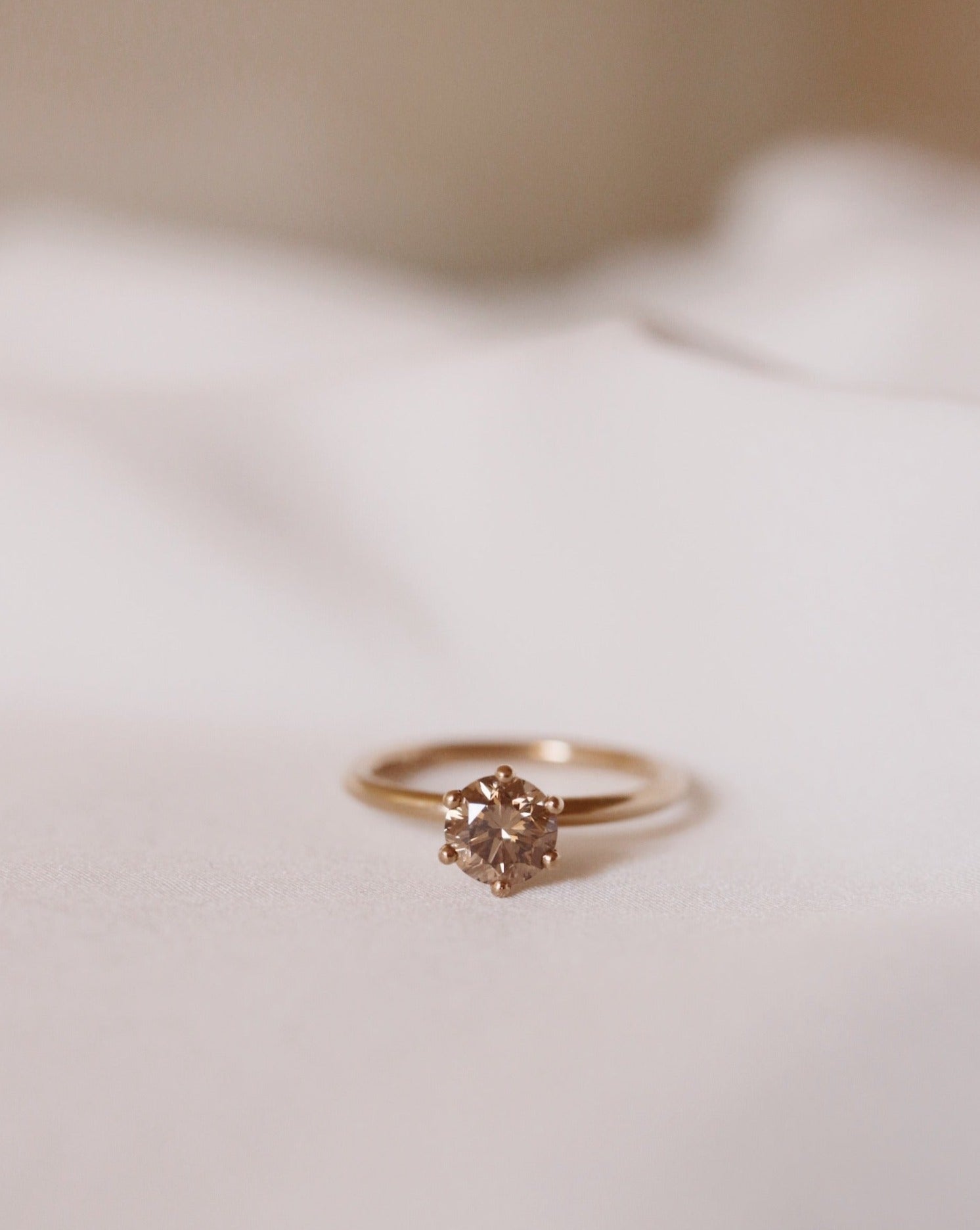 The diamond is a natural, brown diamond in our signature chocolate tone.