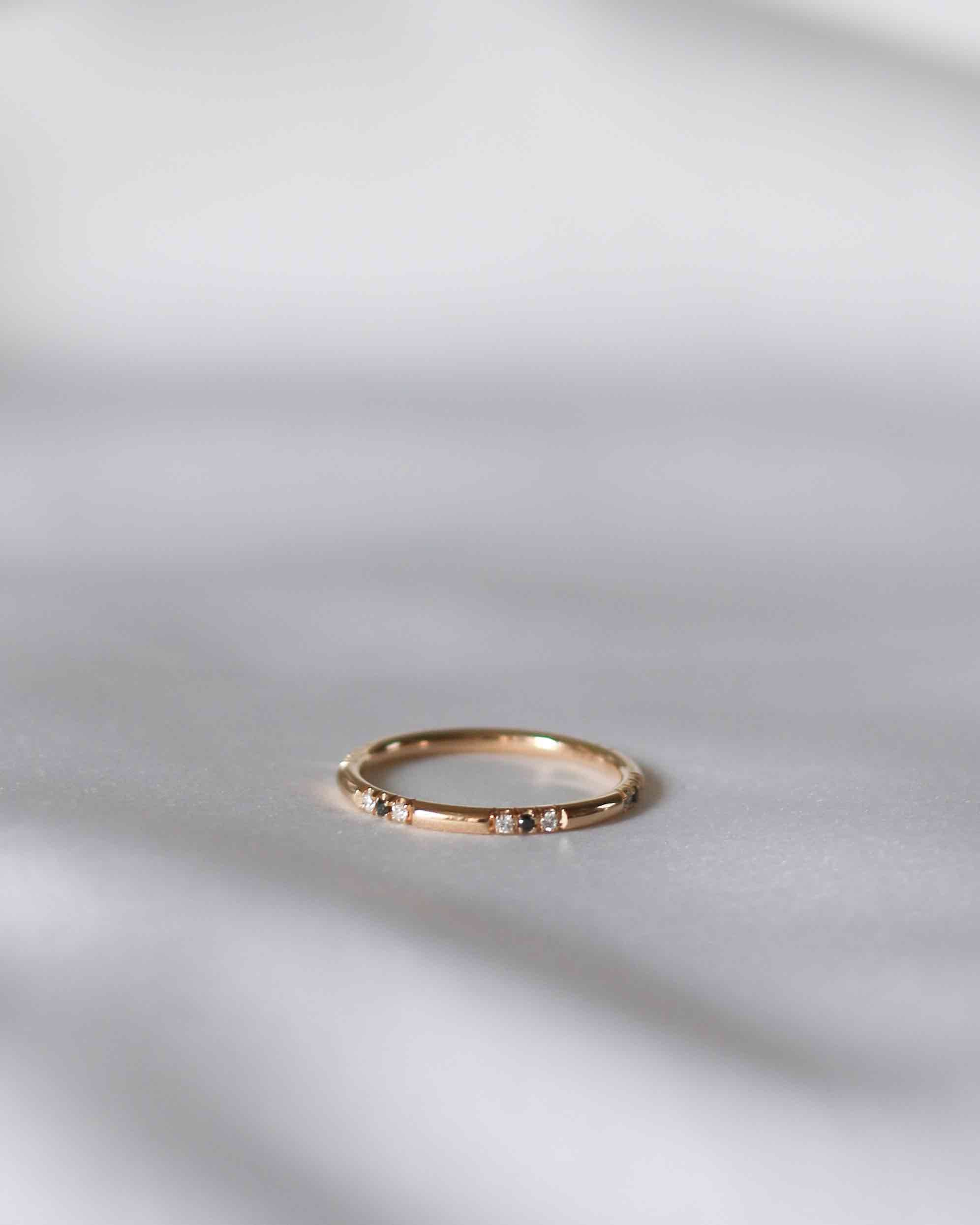 Three Dots Spread Around Ring med Svarta och Vita Diamanter