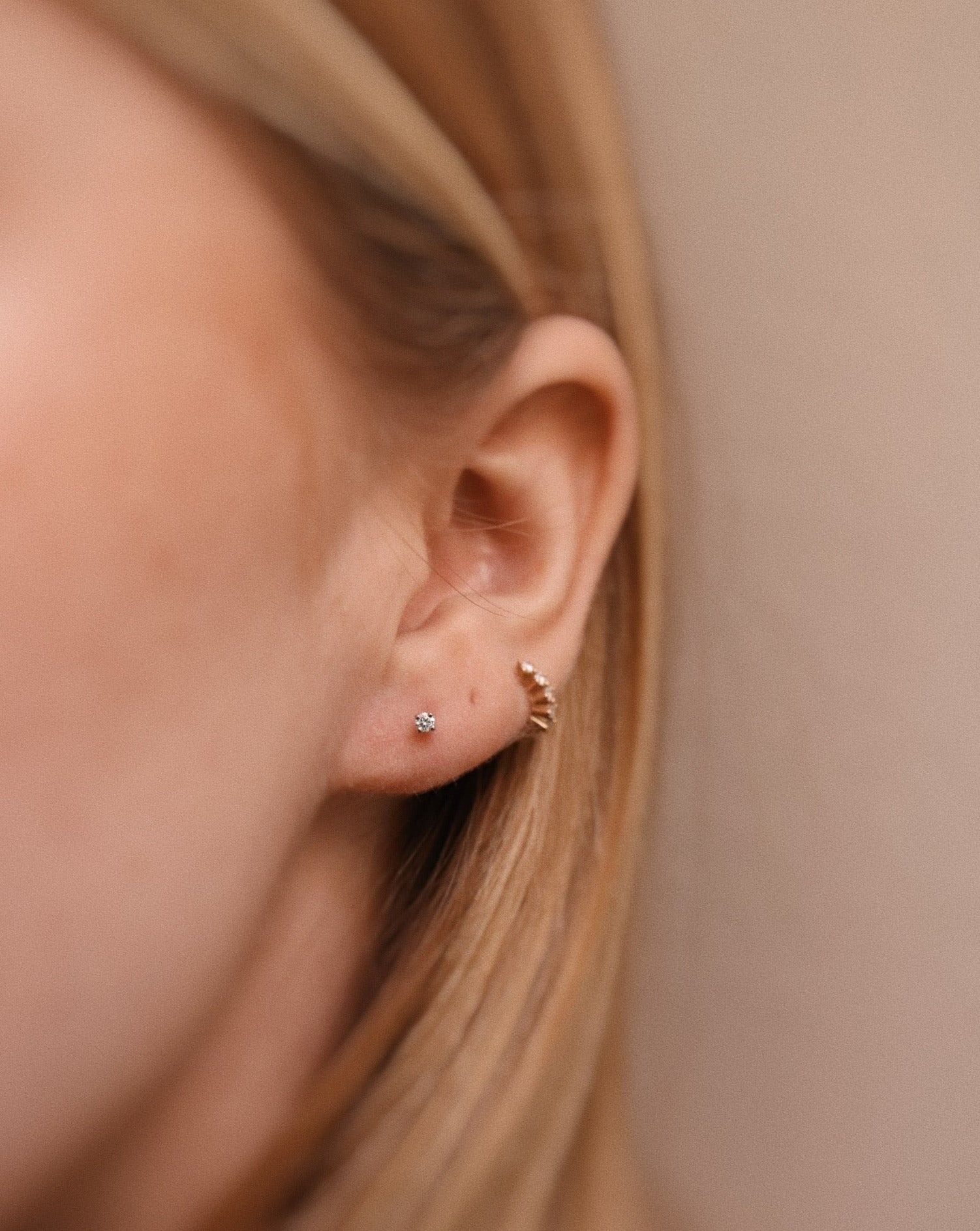 Jag har en förkärlek för minimalistiska diamantörhängen som kan bäras varje dag och inte behöver bytas ut. Därför lägger jag stor vikt vid två aspekter när jag designar: att de ska vara så bekväma att du kan sova i dem, och att du ska kunna bära samma örhängen dag ut och dag in. De ska därför ha säkra lås och vara hållbara!
