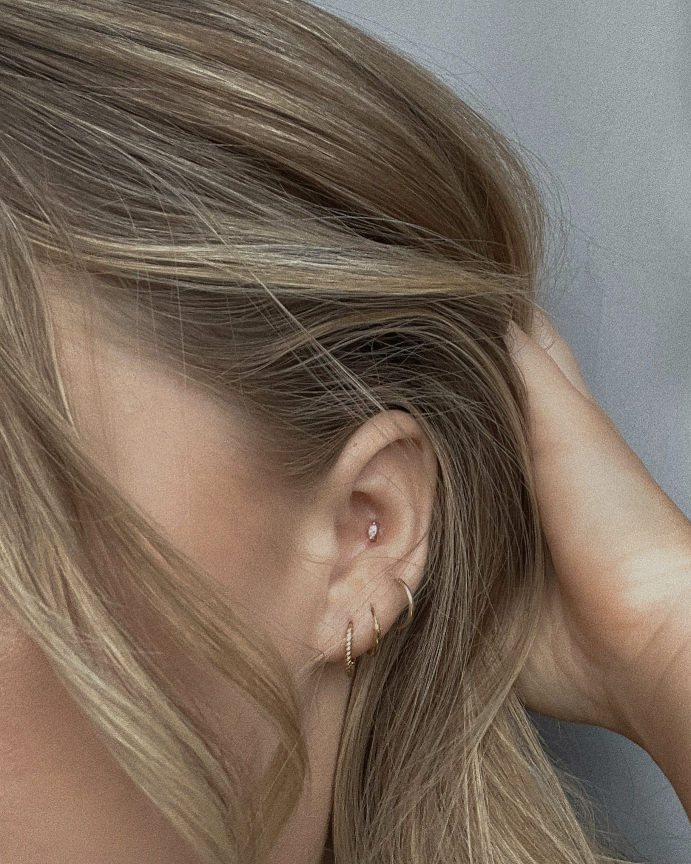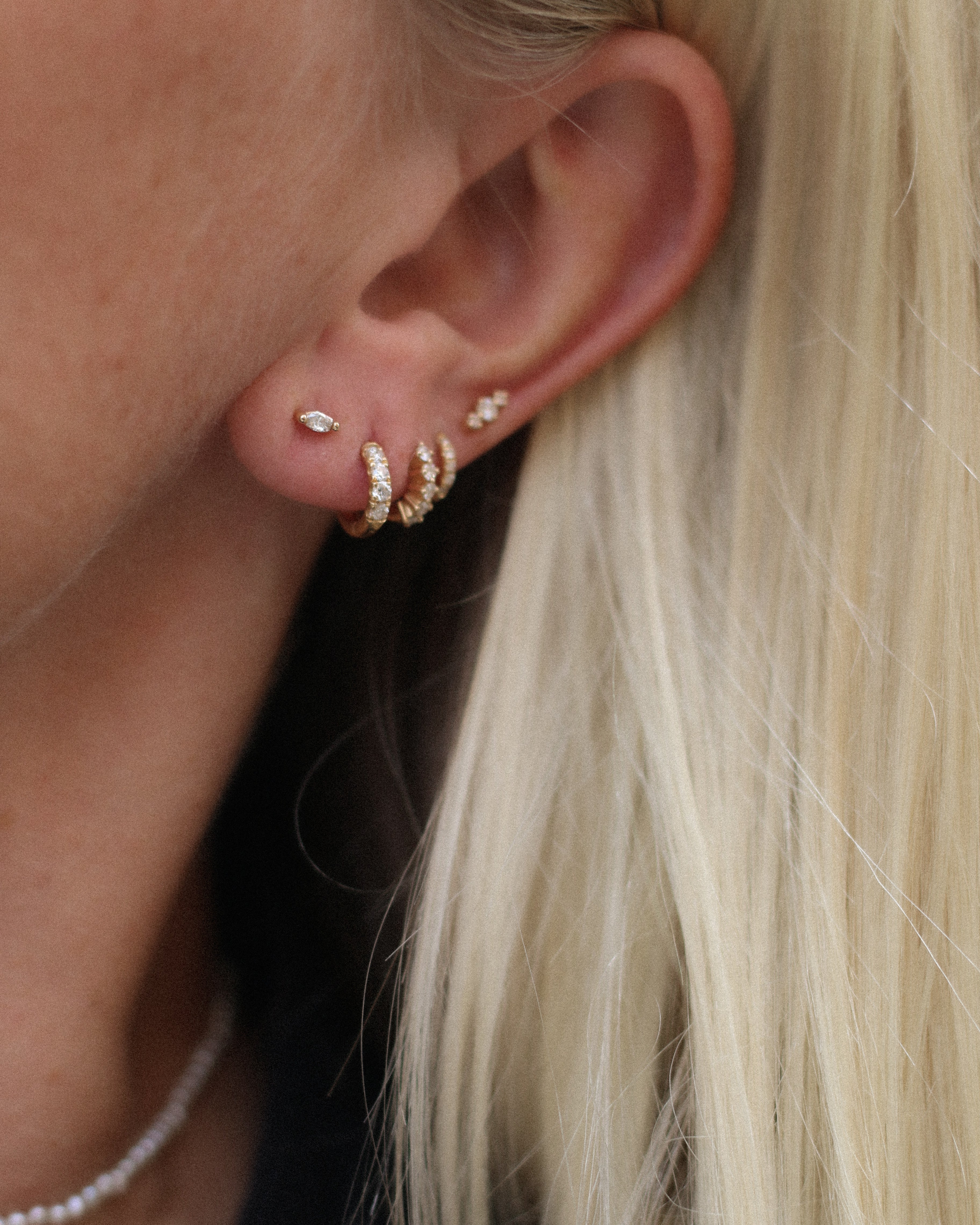 Jag har en förkärlek för minimalistiska diamantörhängen som kan bäras varje dag och inte behöver bytas ut. Därför lägger jag stor vikt vid två aspekter när jag designar: att de ska vara så bekväma att du kan sova i dem, och att du ska kunna bära samma örhängen dag ut och dag in. De ska därför ha säkra lås och vara hållbara!