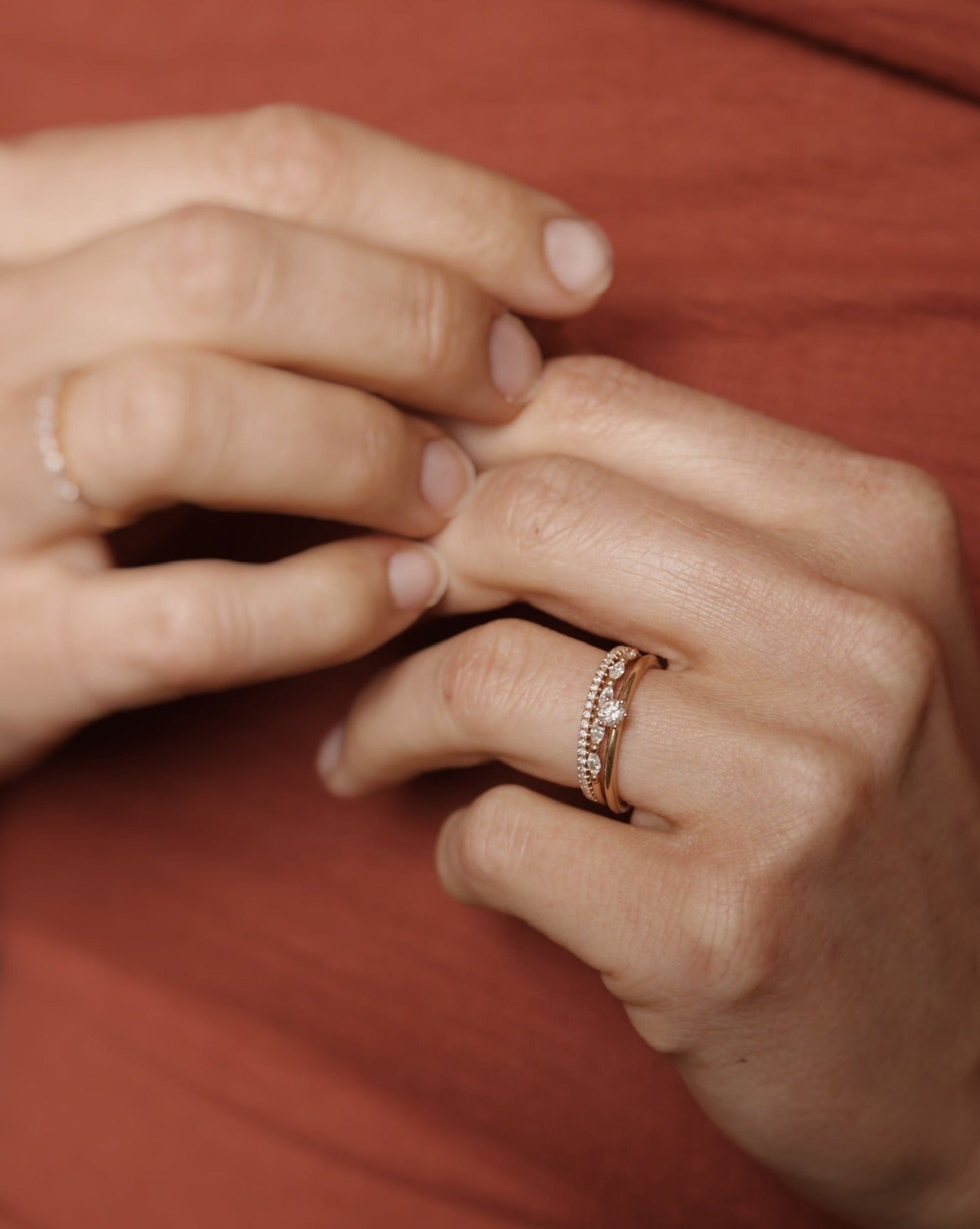 Ringen har ett lätt ovalt ringband som gör att den får ett mycket elegant uttryck på fingret. En riktig favorit!