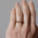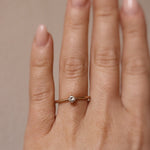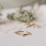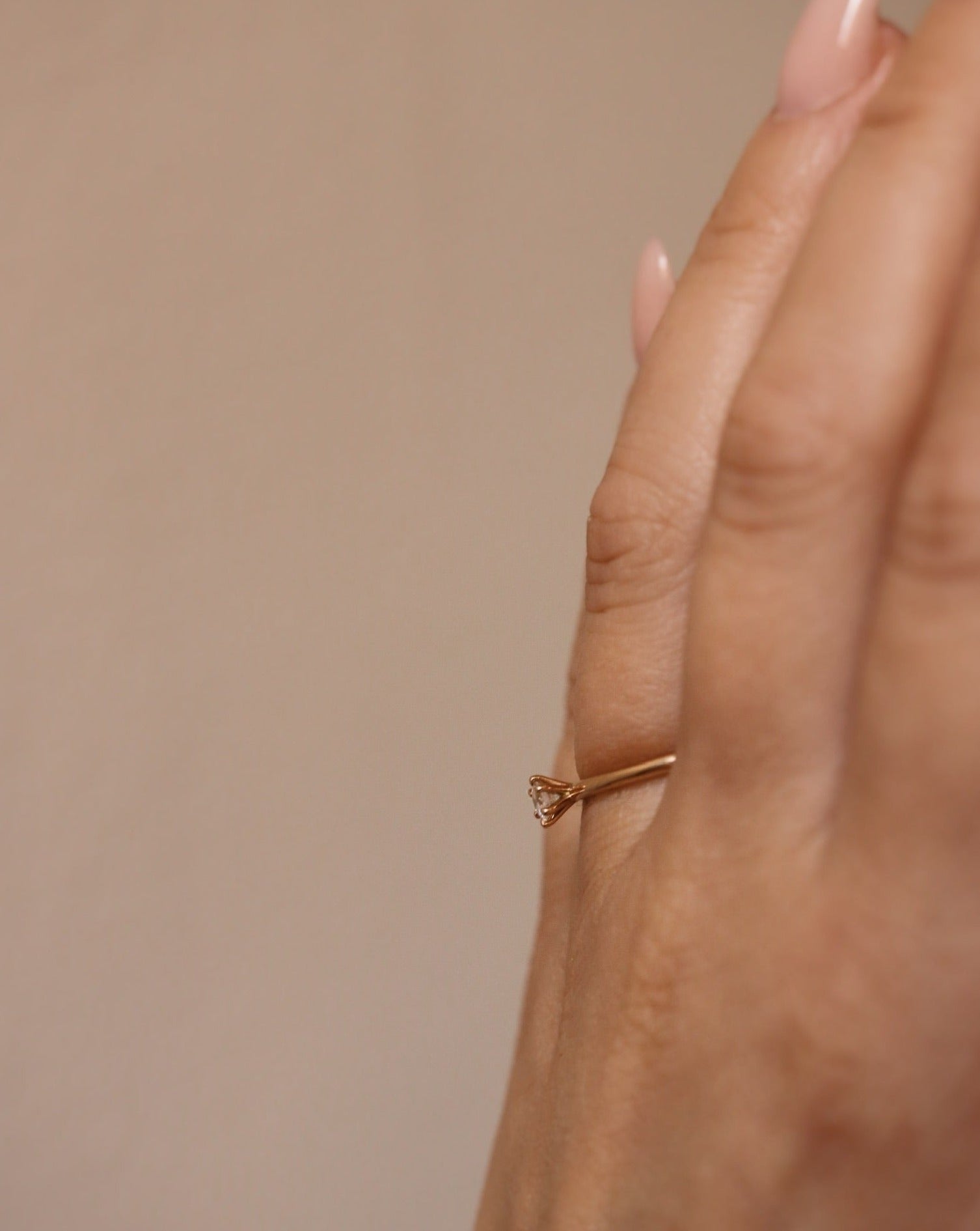 Trogen vår kärlek till minimalistiska fattningar hålls denna 0.15 CT diamant tryggt på plats av sex klor, utan sarg som bryter upp. Tack vare sina sex klor är detta en ring som passar sig väl att bäras varje dag - såväl att användas som förlovningsring!