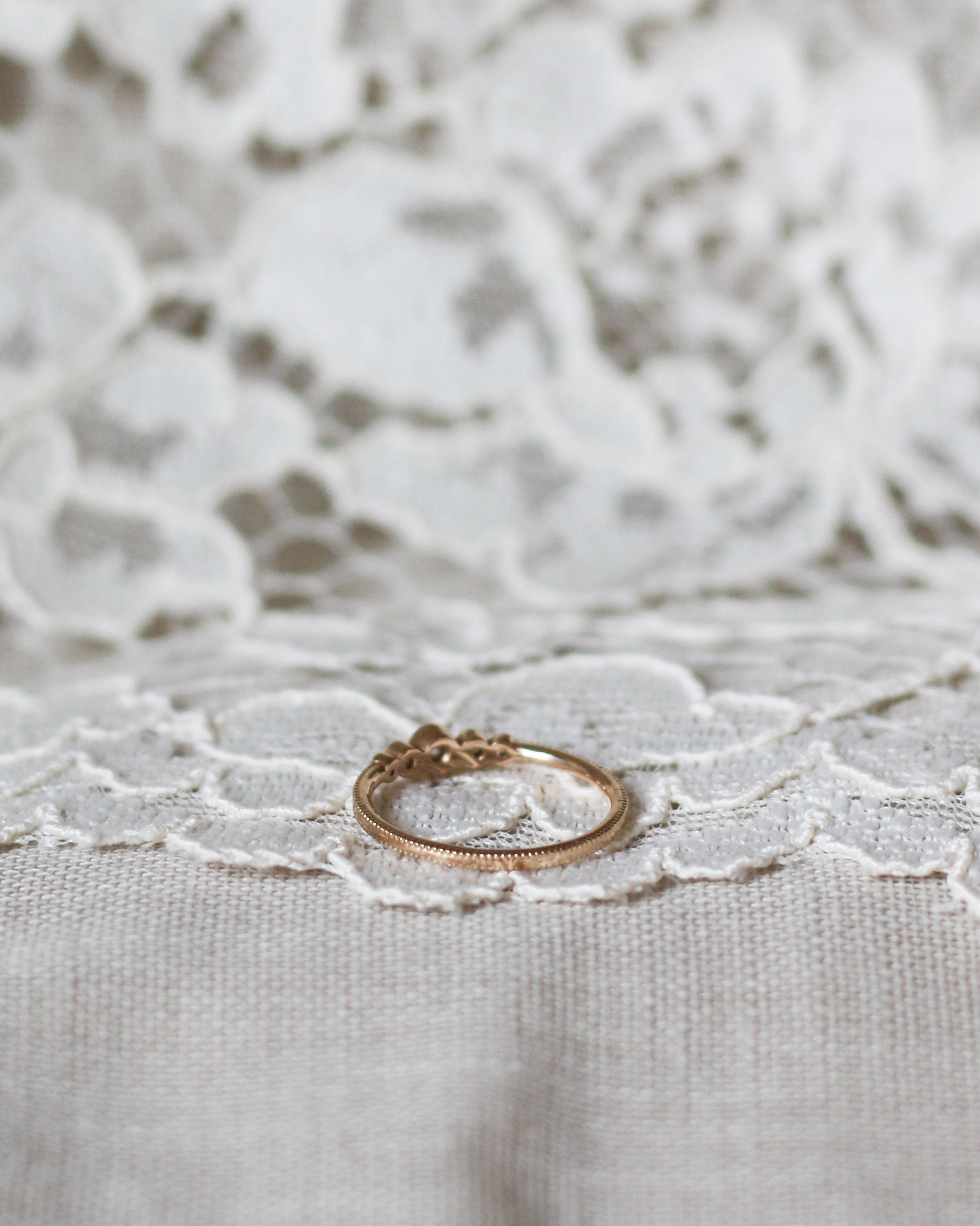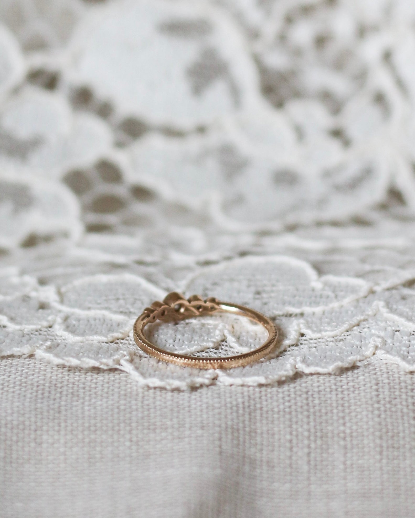 Här har vi lagt till den vackra milligriffdekoren - de små guldprickarna - runtom diamanterna. Dessa för tankarna tillbaka till början av 1900-talet, då denna dekor var vanlig.