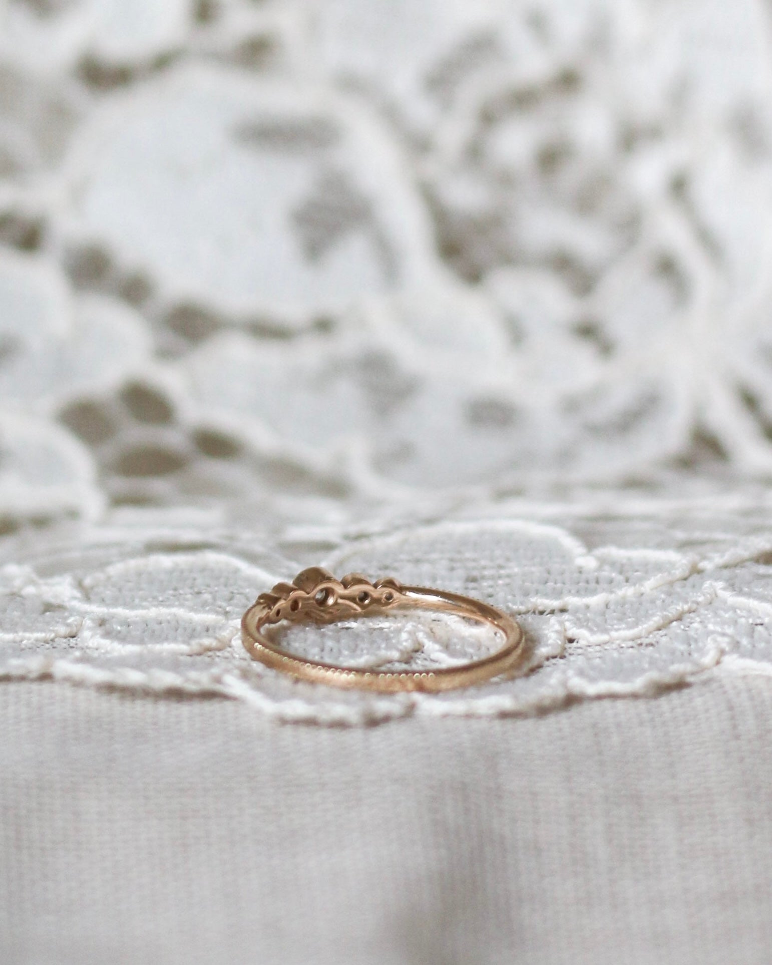 Men de förstorar också intrycket av diamanterna och gör att denna ring ger ett större intryck än originalet (Mini Elise Ring). Därför passar denna ring dig som vill ha en enkel, romantisk och vantkompatibel diamantring att bära varje dag - men som ändå tar för sig!